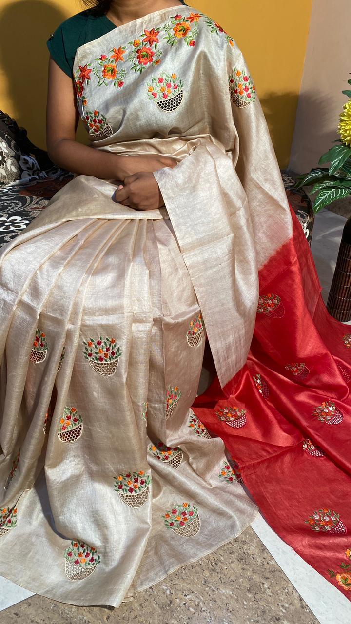 | प्रॉडक्ट टाइप | Pure tussar silk machine embroidered saree. |