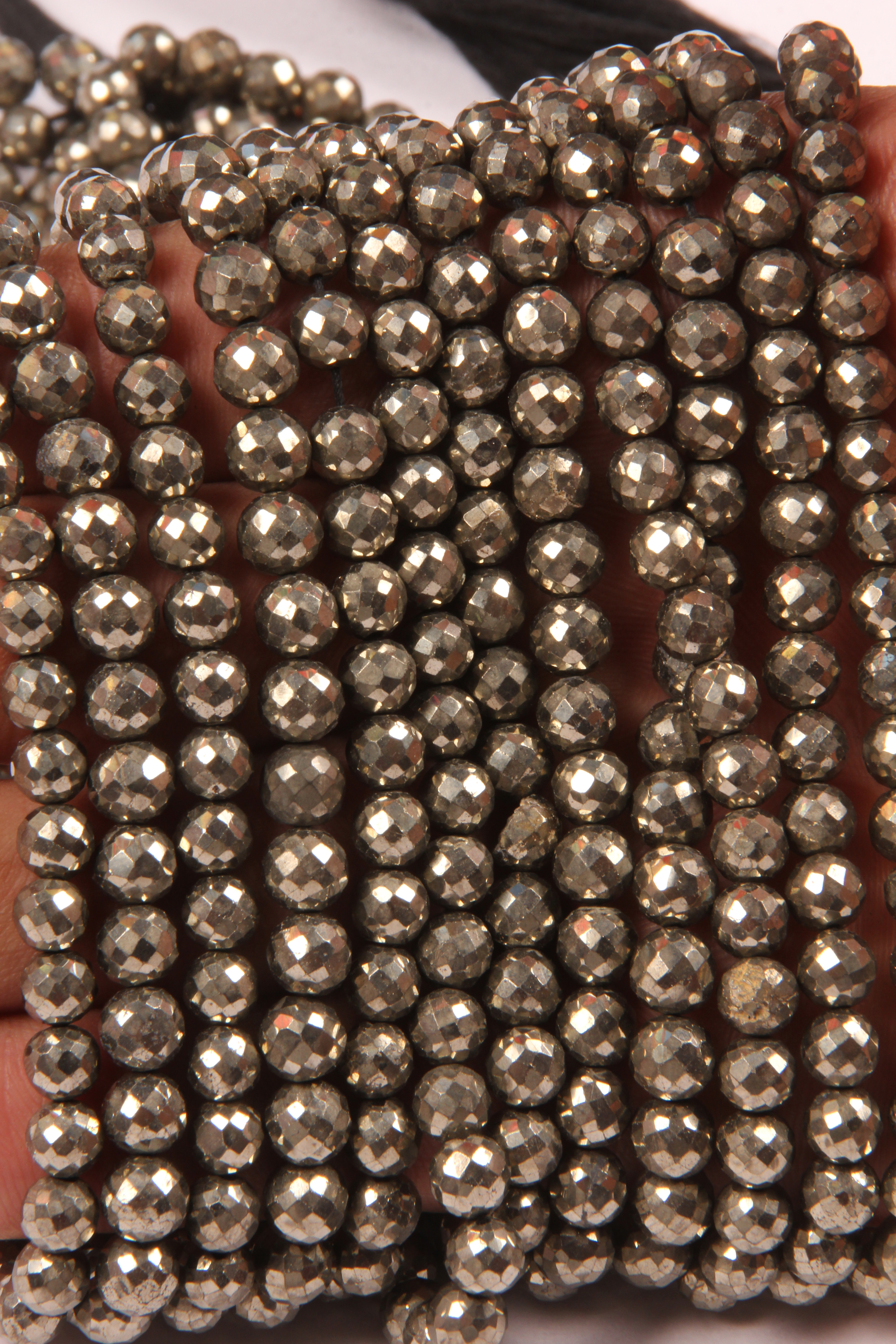 ग्रीन ओनिक्स और गोल्ड पाइराइट 3-4 एमएम फेसेटेड रोंडेल बीड नेकलेस साइज़: सभी साइज़ कर सकते हैं