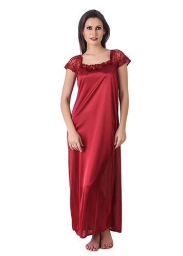 महिलाओं के लिए काली क्विक ड्राई और वॉशेबल प्लेन शॉर्ट स्लीव सॉफ्ट सैटिन नाइटी