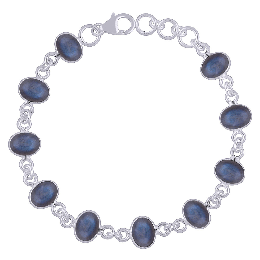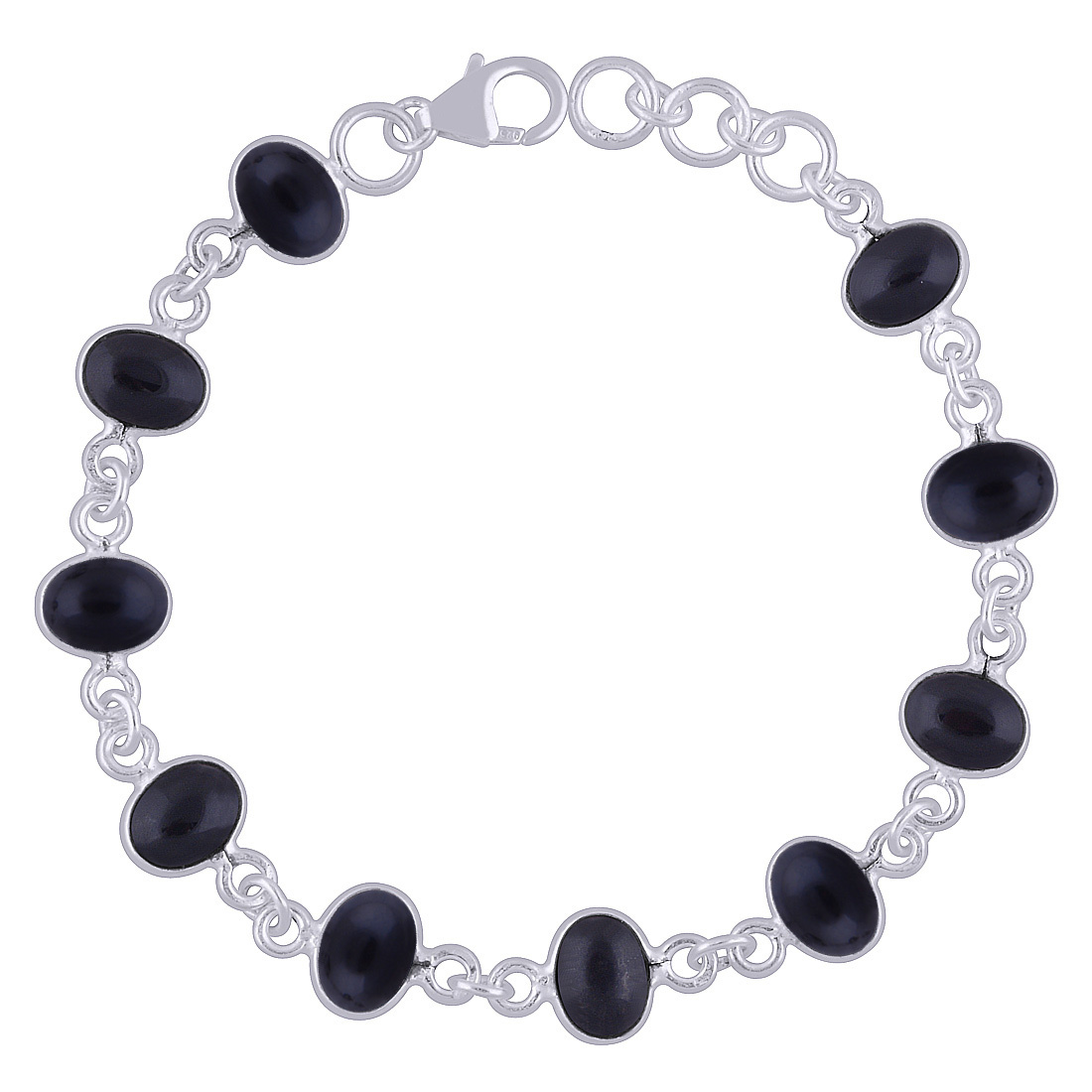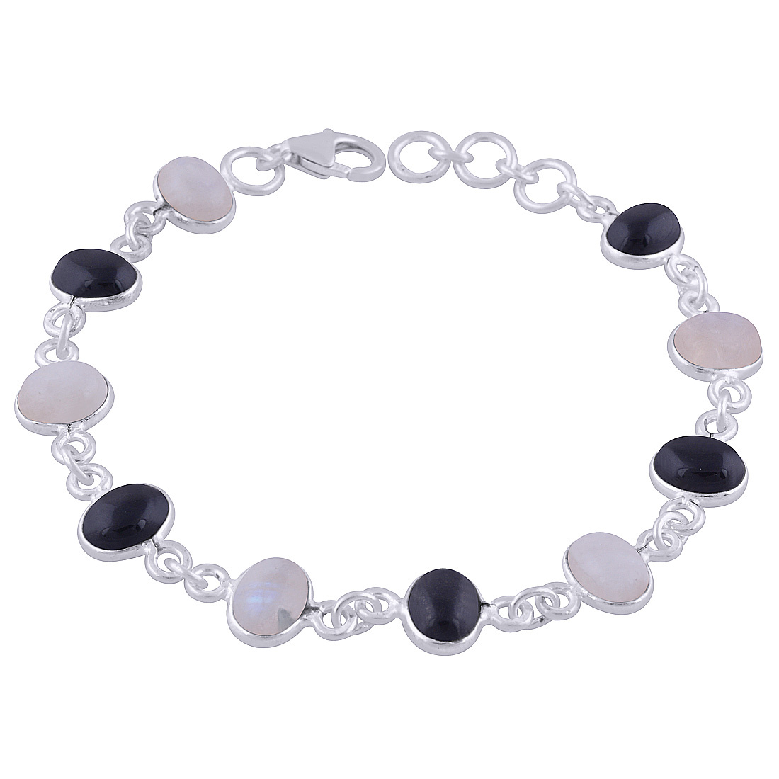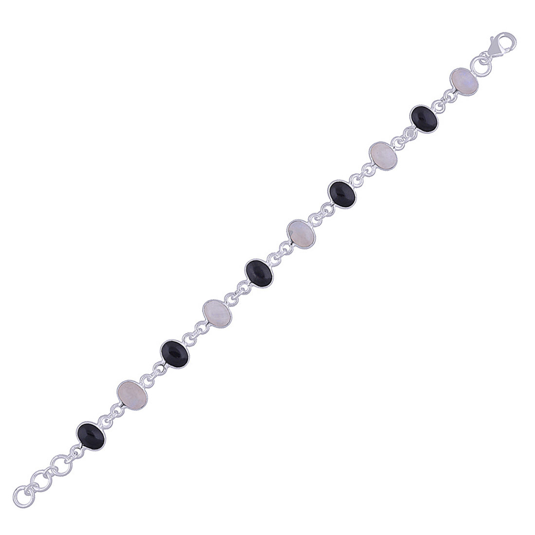 रेनबो/ब्लैकोनिक्स नेचुरल जेमस्टोन 925 स्टर्लिंग सॉलिड सिल्वर ओवल काबोचोन हैंडमेड ब्रेसलेट व्यास: लंबाई: 7.5 इंच X चौड़ाई: 9 मिमी इंच (इंच)