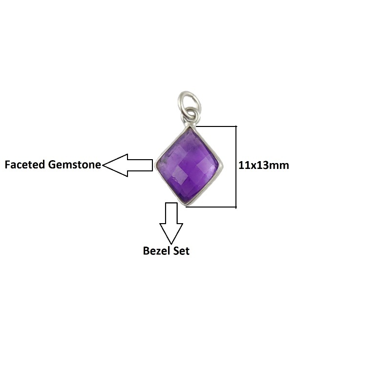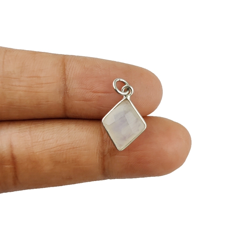 रेनबो मूनस्टोन जेमस्टोन डायमंड शेप स्टर्लिंग सिल्वर 11x13 मिमी बेज़ल चार्म