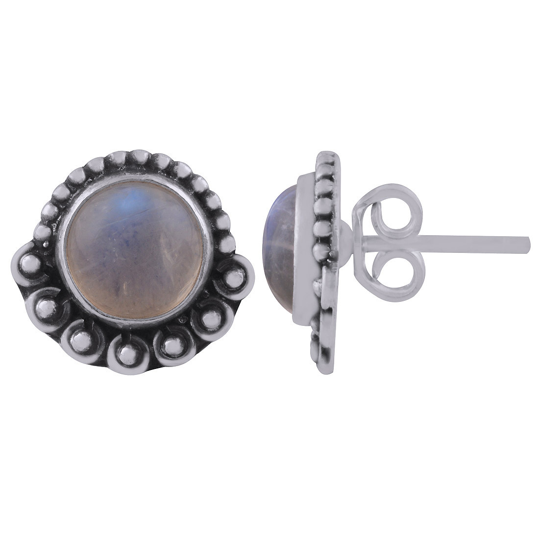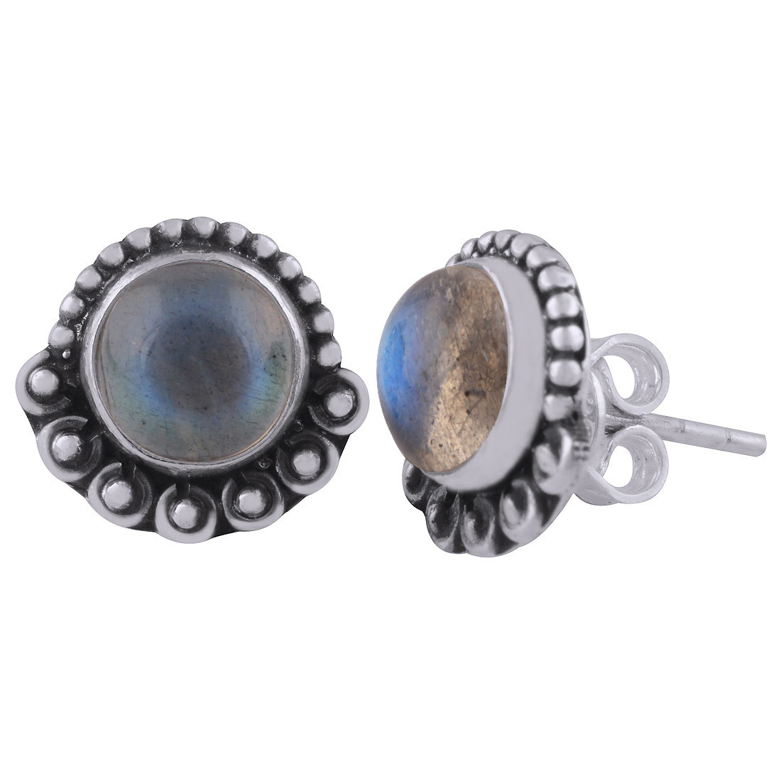 रेनबो नेचुरल जेमस्टोन 925 स्टर्लिंग सॉलिड सिल्वर राउंड काबोचोन स्टोन हैंडमेड स्टड इयररिंग्स साइज़: लंबाई: 12 मिमी X चौड़ाई: 11 मिमी