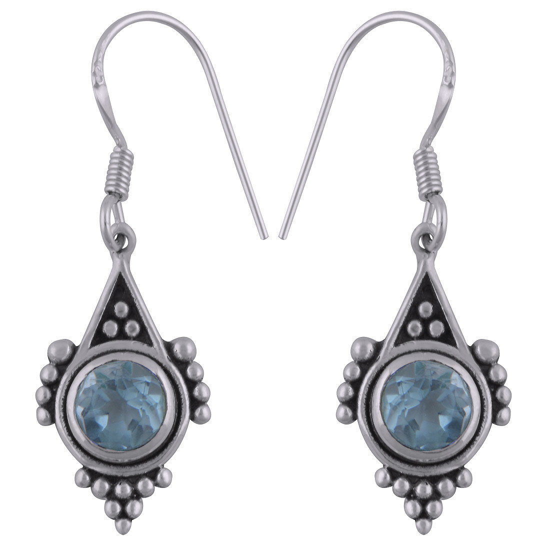 Explore in english - Rainbow Natural Gemstone 925 Sterling Solid Silver Round Cut Stone Handmade Earrings