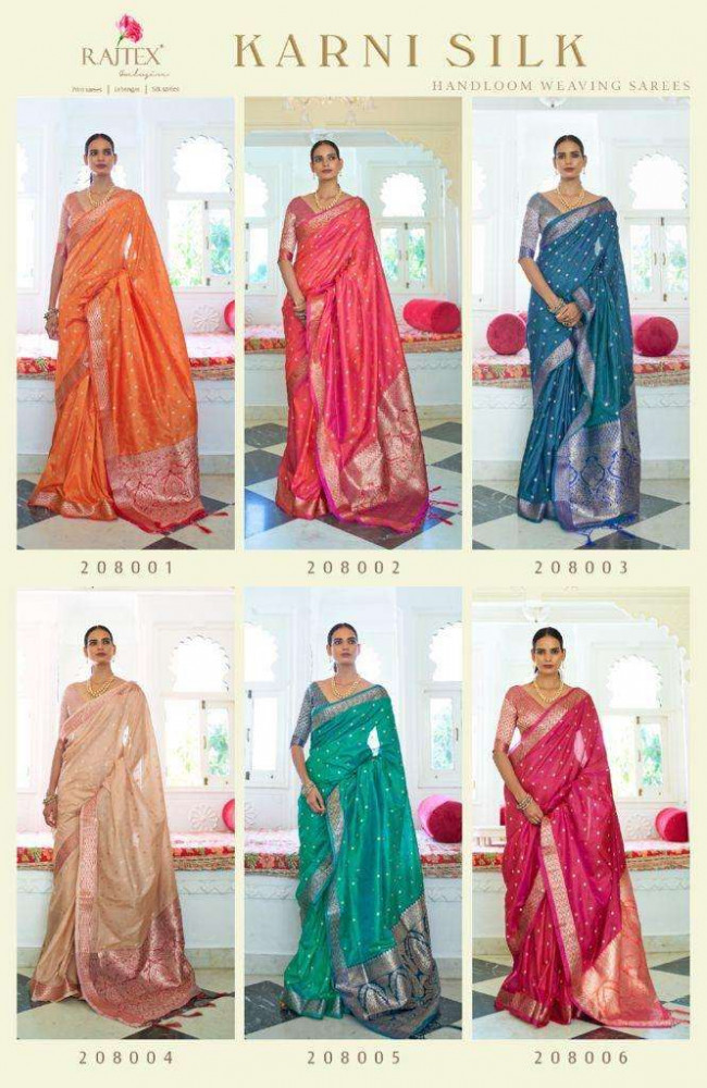 Explore in english - Rajtex Karni Silk 208001-208006 Series Handloom Weaving Saree Catalog