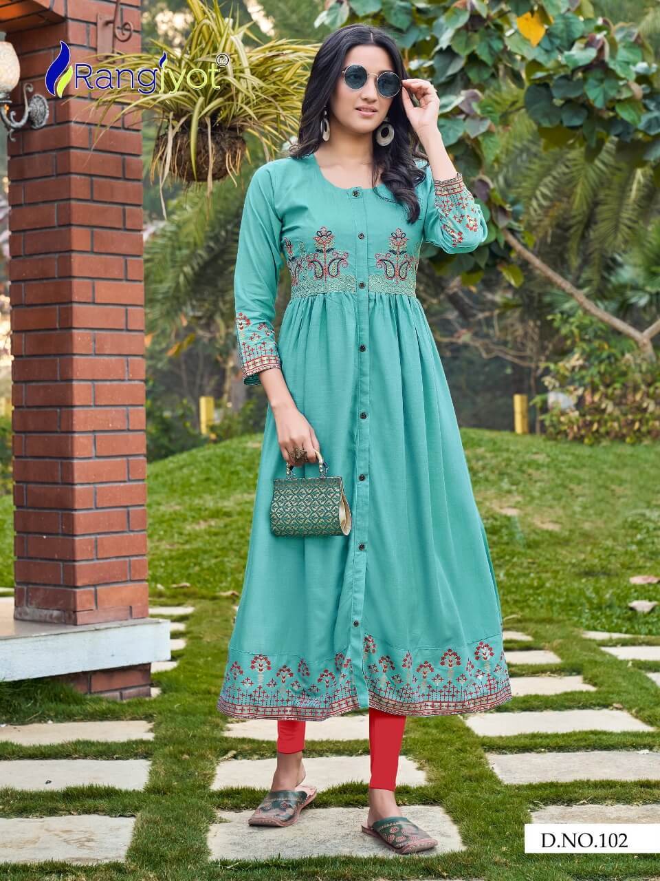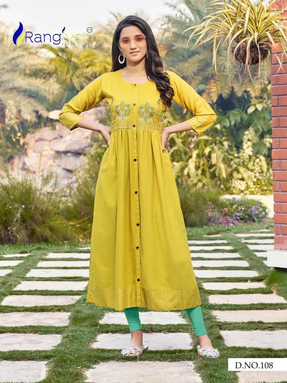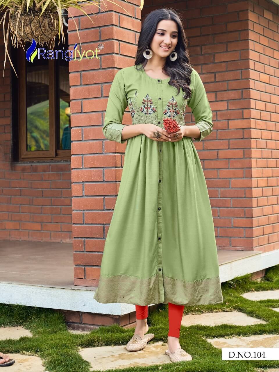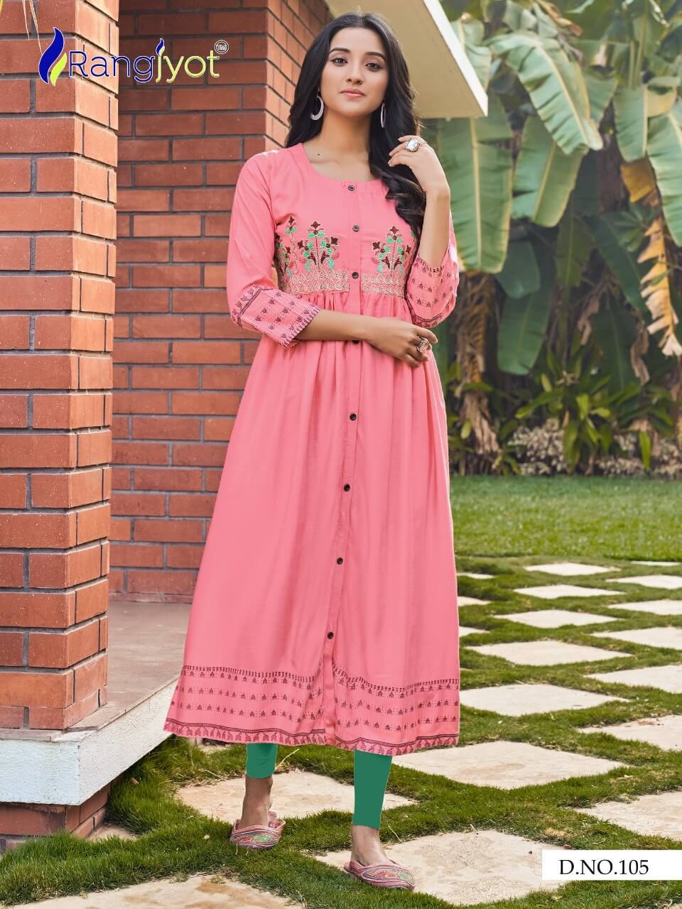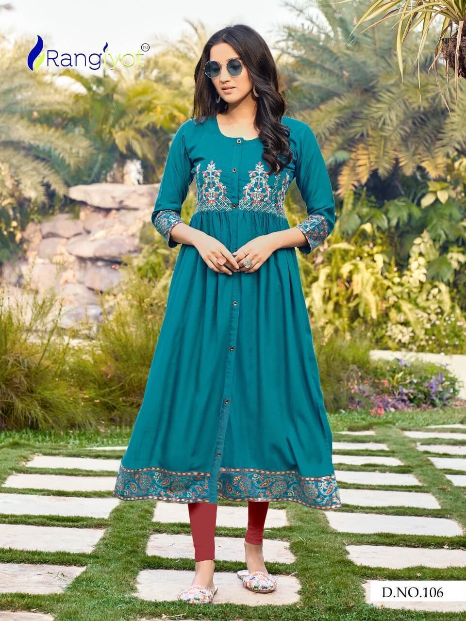 ड्राई क्लीनिंग रंगज्योत ग्रेसिया 1 फैंसी रेयन एम्ब्रायडरी कुर्टिस कैटलॉग