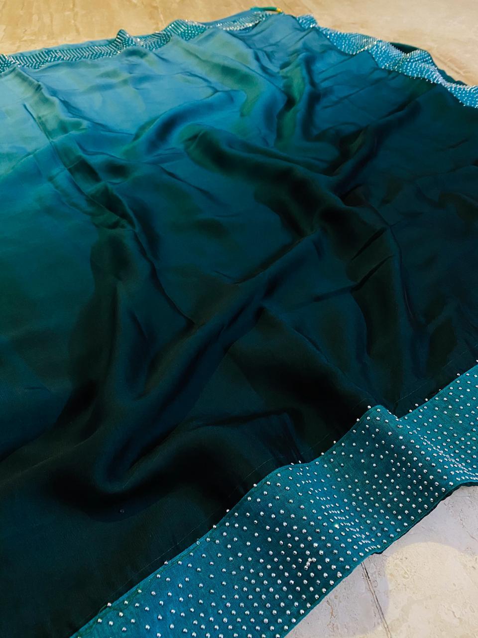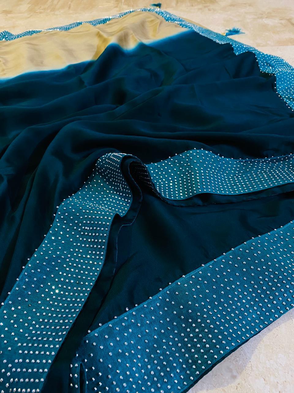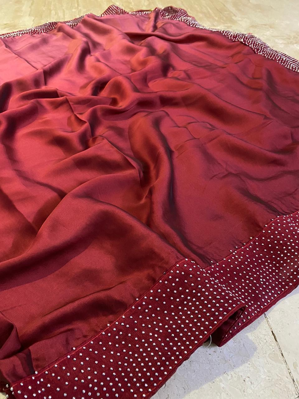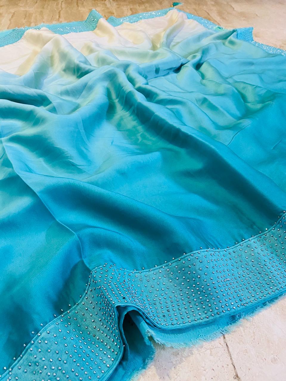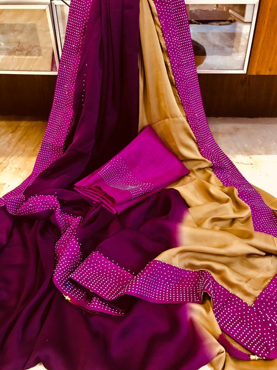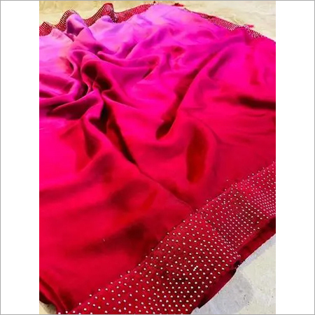 क्रीम रंग की महिलाओं की क्रश चिनोन साड़ी ब्लाउज़ और कमर बेल्ट के साथ