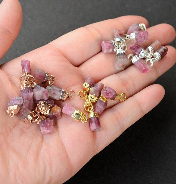 रॉ पिंक टूमलाइन जेमस्टोन पेंडेंट का साइज़: 10-14mm