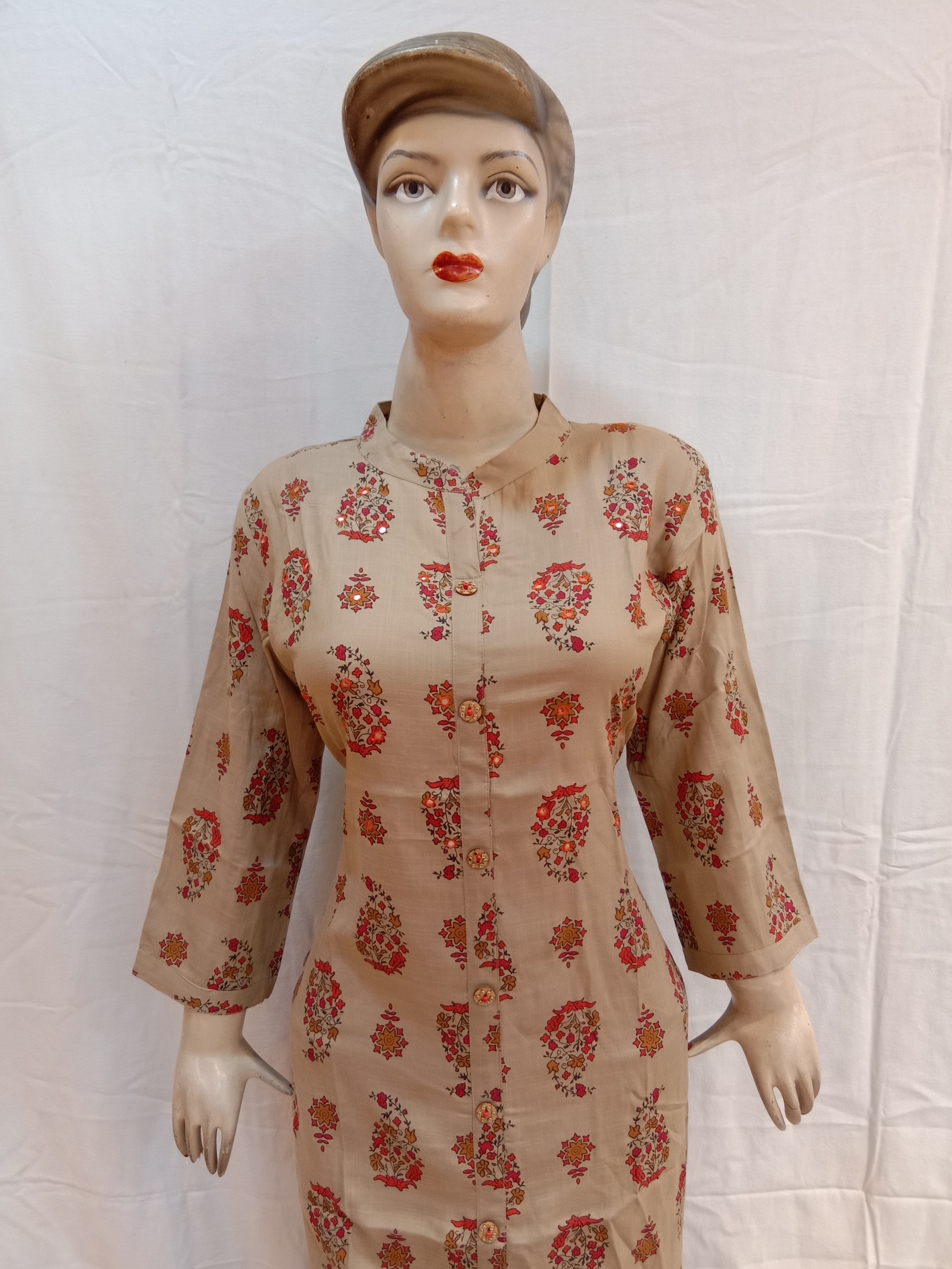 सांस लेने योग्य A-लाइन कॉटन ब्राउन कलर जयपुरी कुर्ती