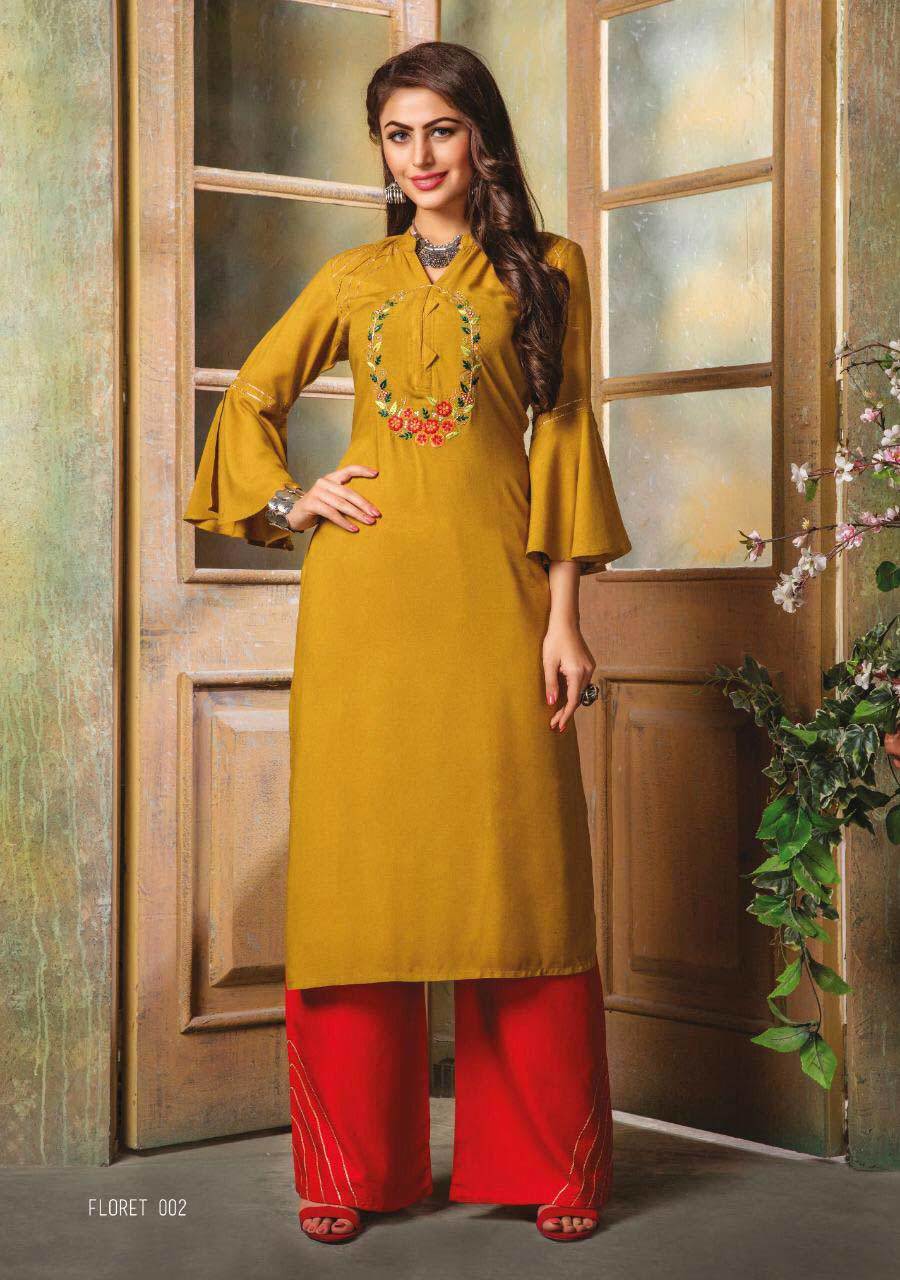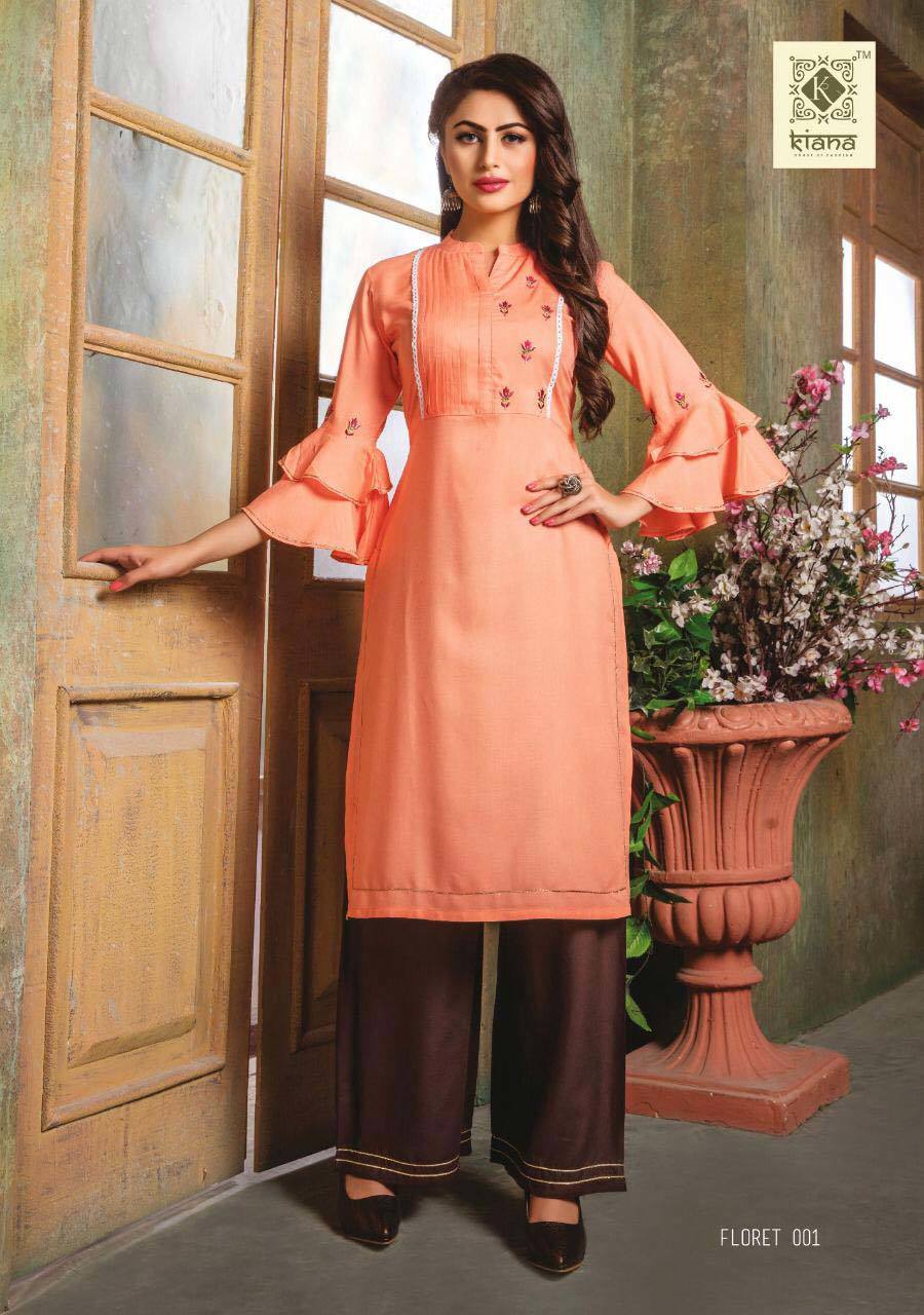 एम्ब्रॉयडर्ड रेयॉन कुर्ती प्लाज़ो सेट