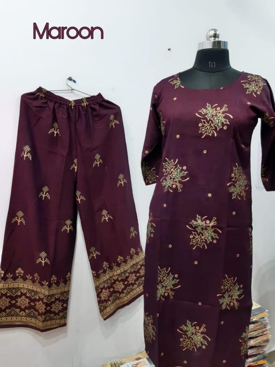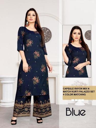प्लाज़ो बस्ट के साथ रेयॉन कुर्ती साइज़: 40 सेंटीमीटर (Cm)
