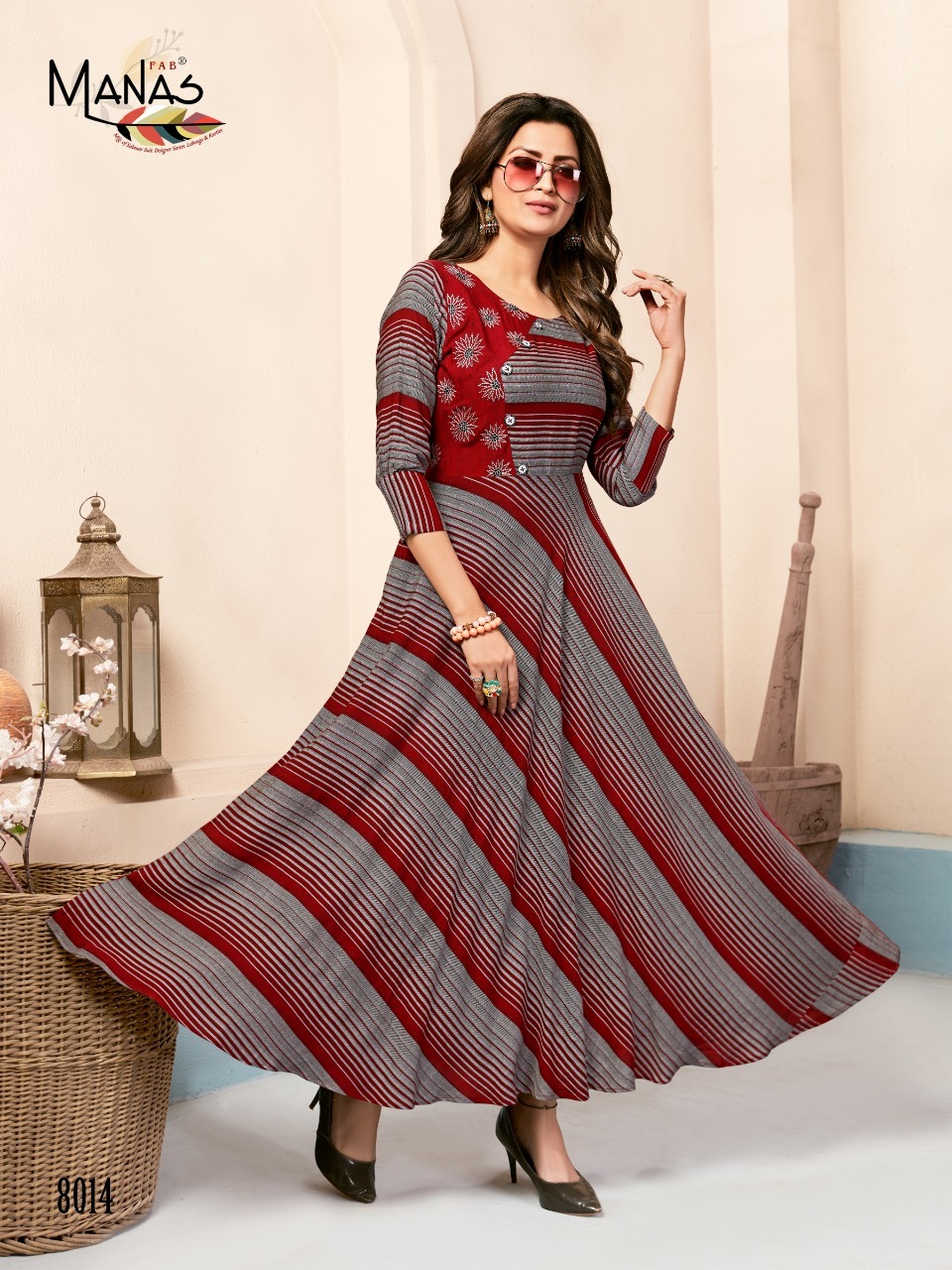 Explore in english - Rayon Long Gown Printed Embroidery Work
