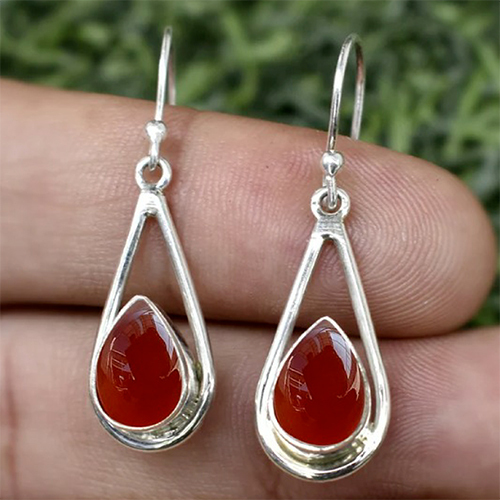 Explore in english - Sterling silver 92.5 % Red Cabochon Gems Earrings