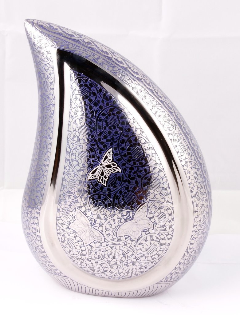 मानव अस्थियों के लिए पुष्प डिज़ाइन वाला एल्युमिनियम वयस्क दाह संस्कार बर्तन, स्मारक बर्तन
