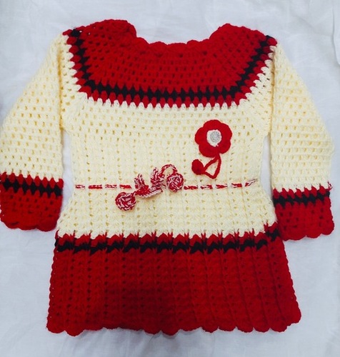 लाल हाथ से बुना हुआ लड़कियों का स्वेटर
