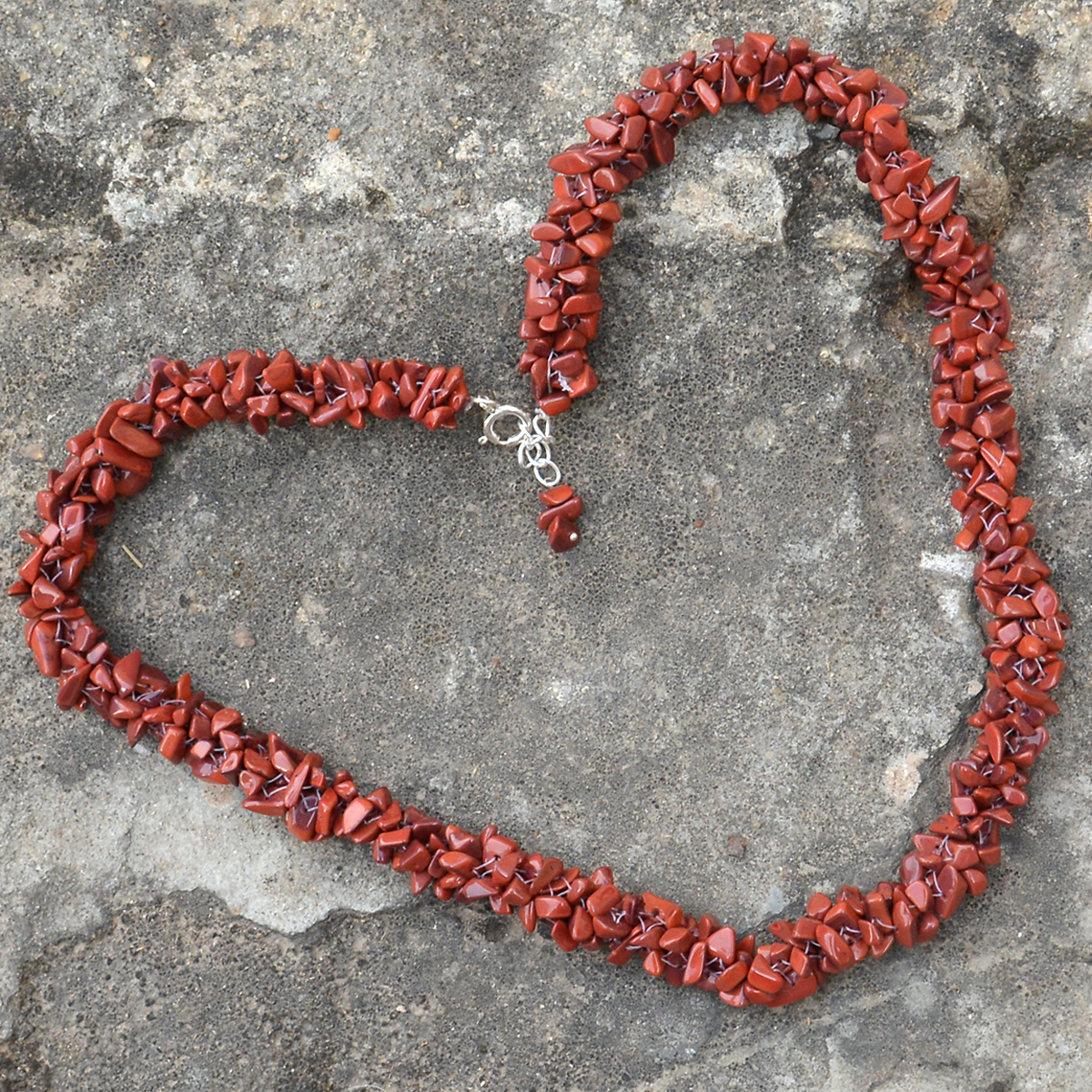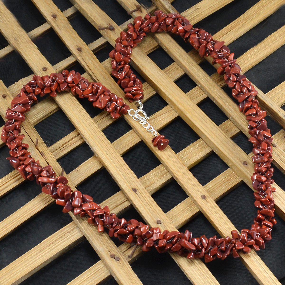 Explore in english - Red Jasper Gemstone Silver Chips Necklace PG-156061