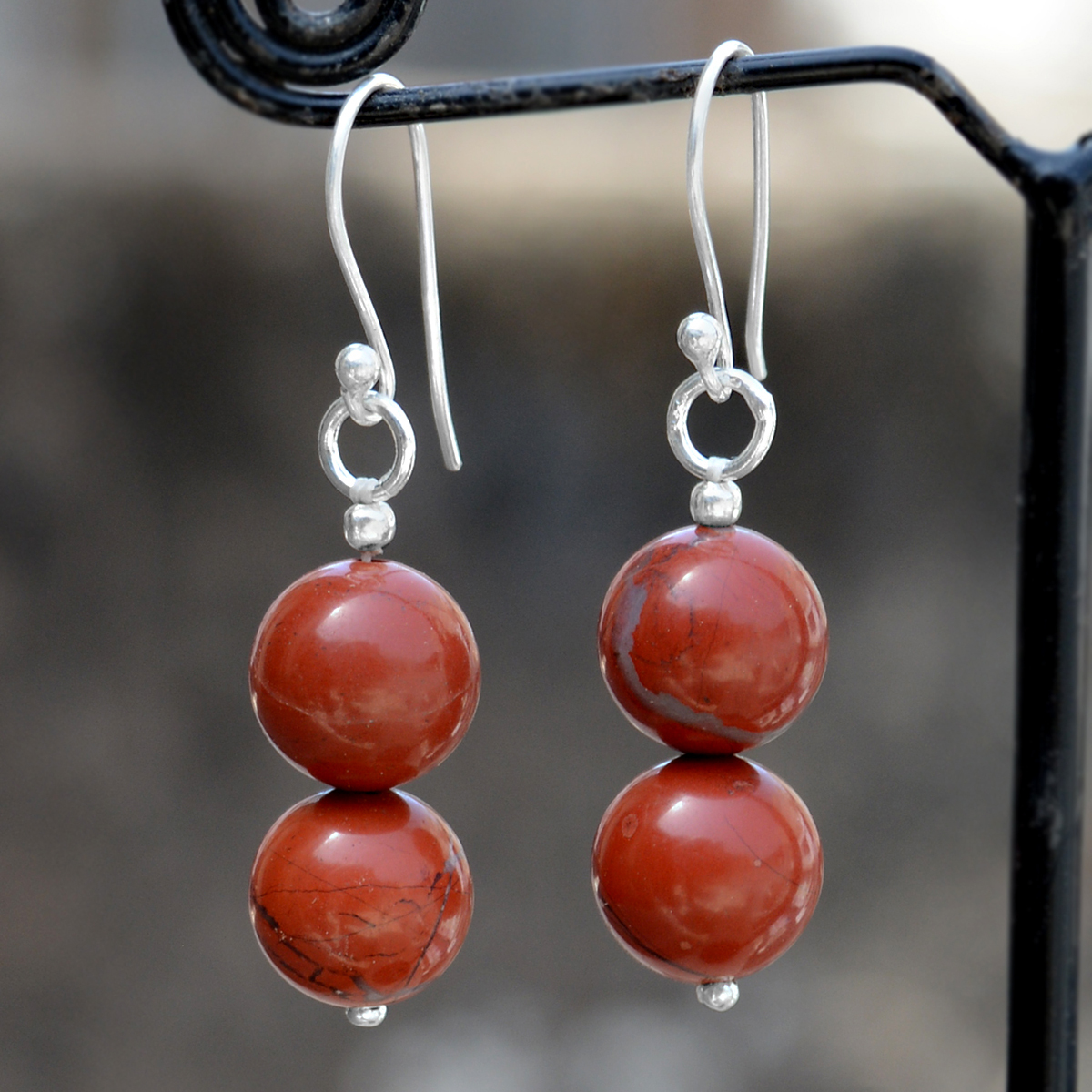 Explore in english - Red Jasper Stone Silver Earring PG-156388
