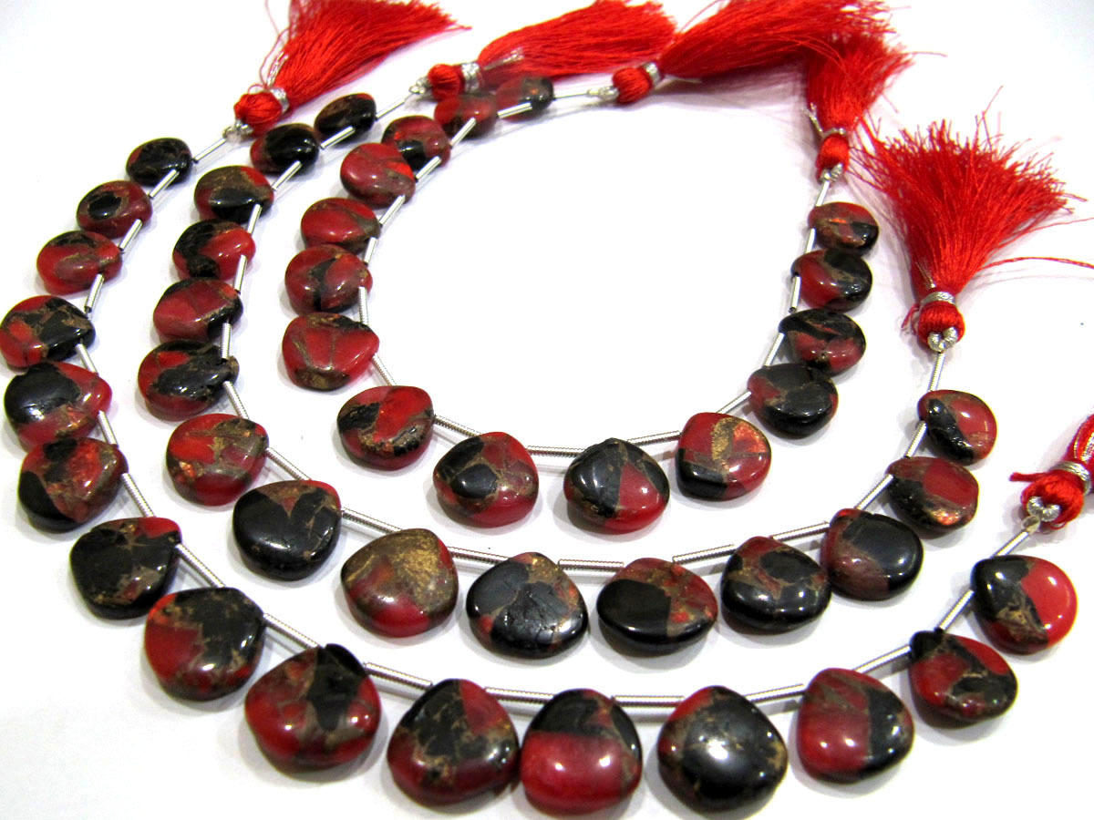 रेड ऑयस्टर कॉपर फ़िरोज़ा हार्ट शेप बीड्स