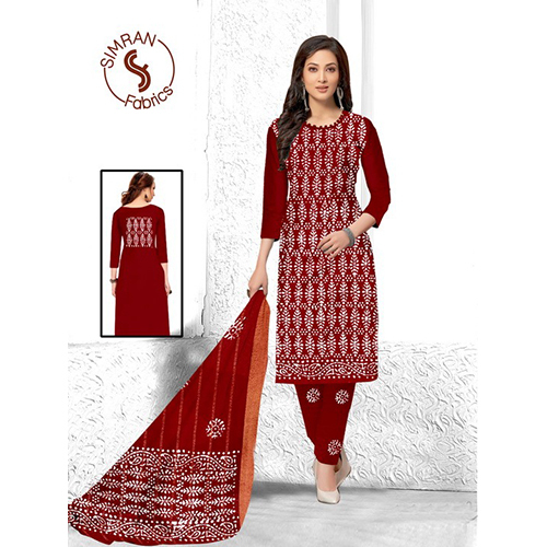 Explore in english - Red Printed Poplin Cotton Suit Material