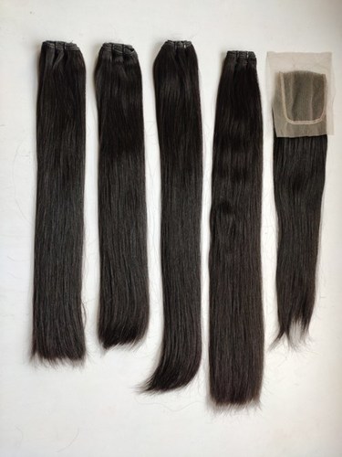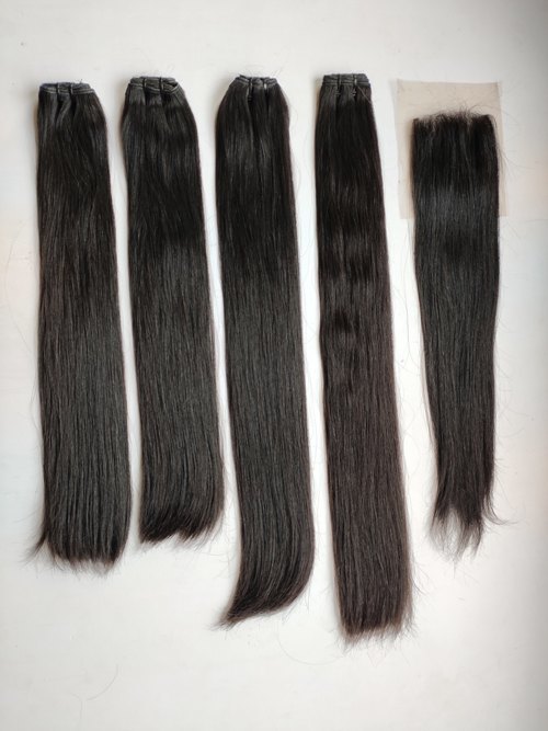 इंडियन रेमी प्योर नेचुरल स्ट्रेट डबल ड्रॉ बंडल क्लोजर के साथ