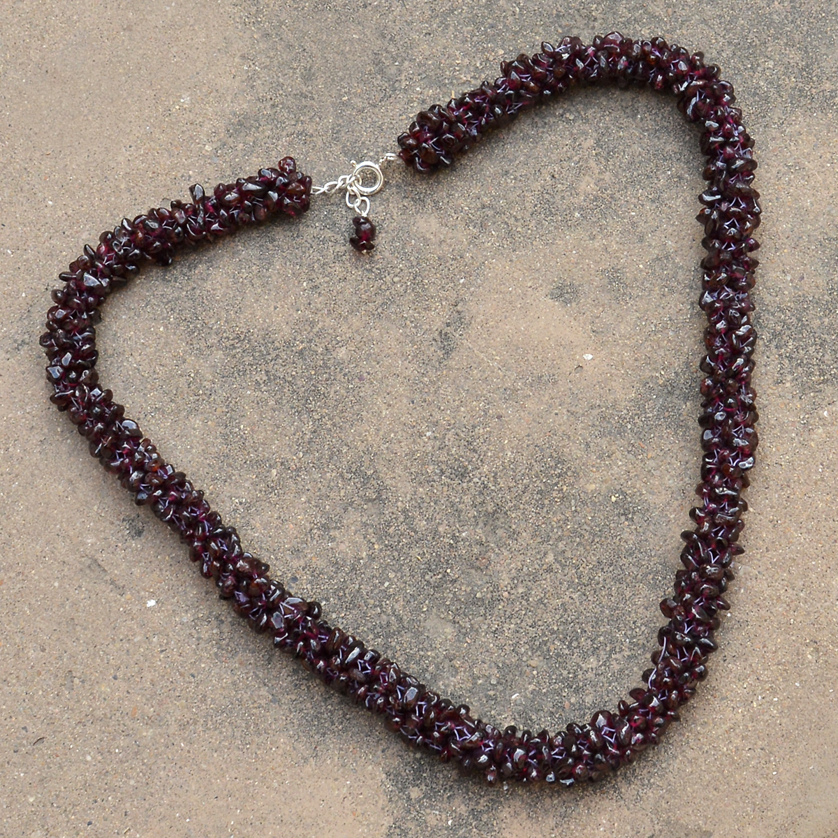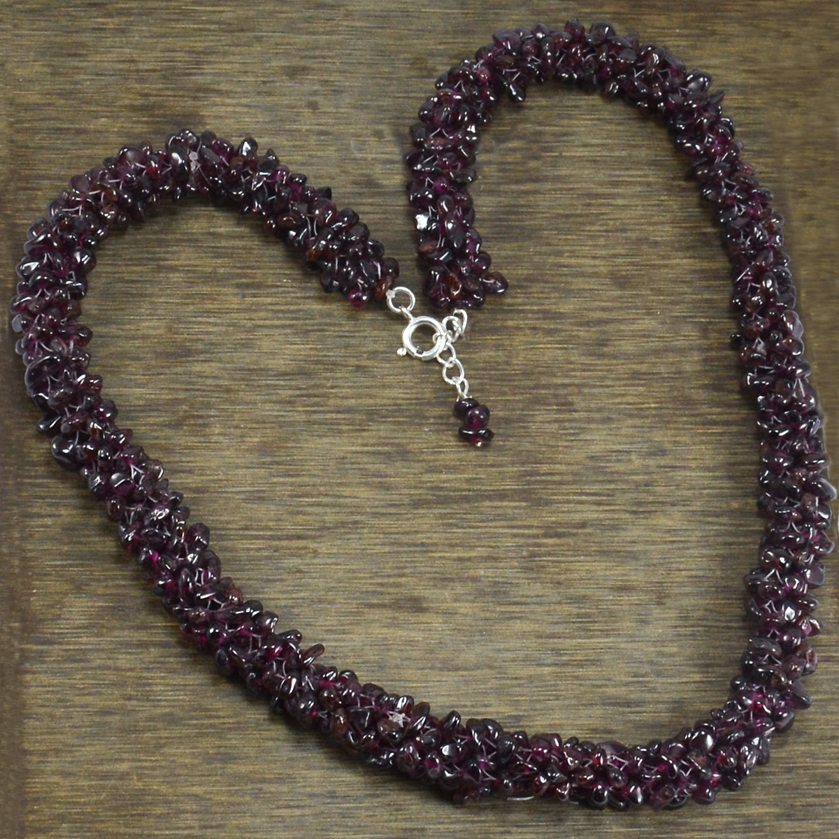 रोडोलाइट गार्नेट जेमस्टोन चिप्स नेकलेस Pg-156059 आकार: 1.3x55.5 Cm.
