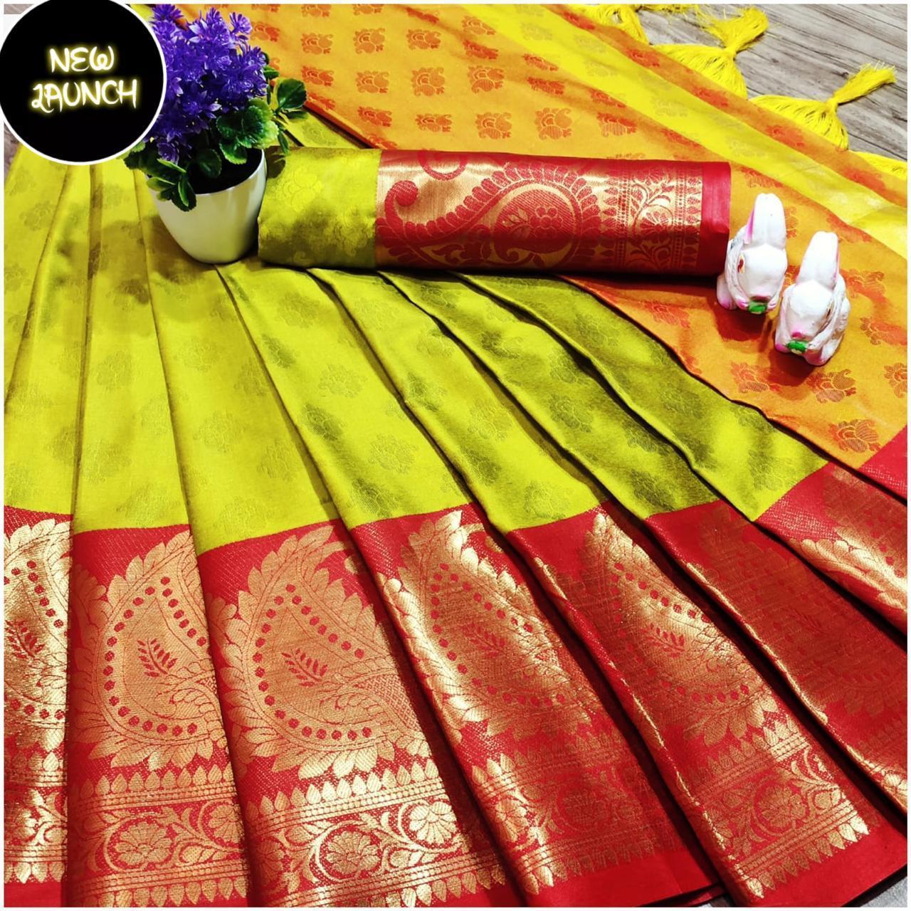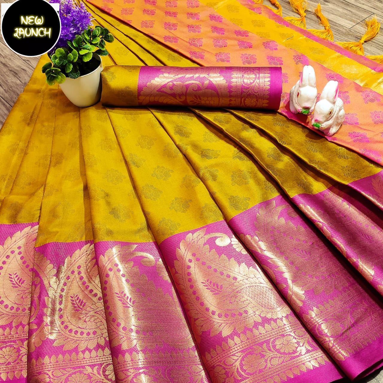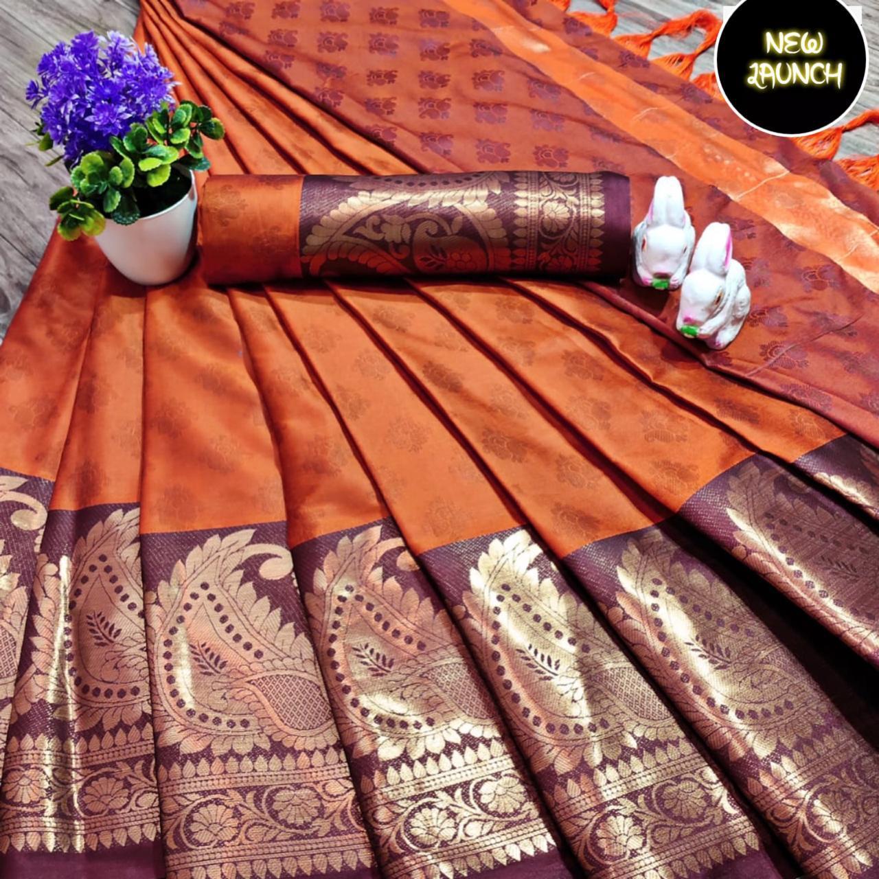 क्रीम रंग की महिलाओं की क्रश चिनोन साड़ी ब्लाउज़ और कमर बेल्ट के साथ