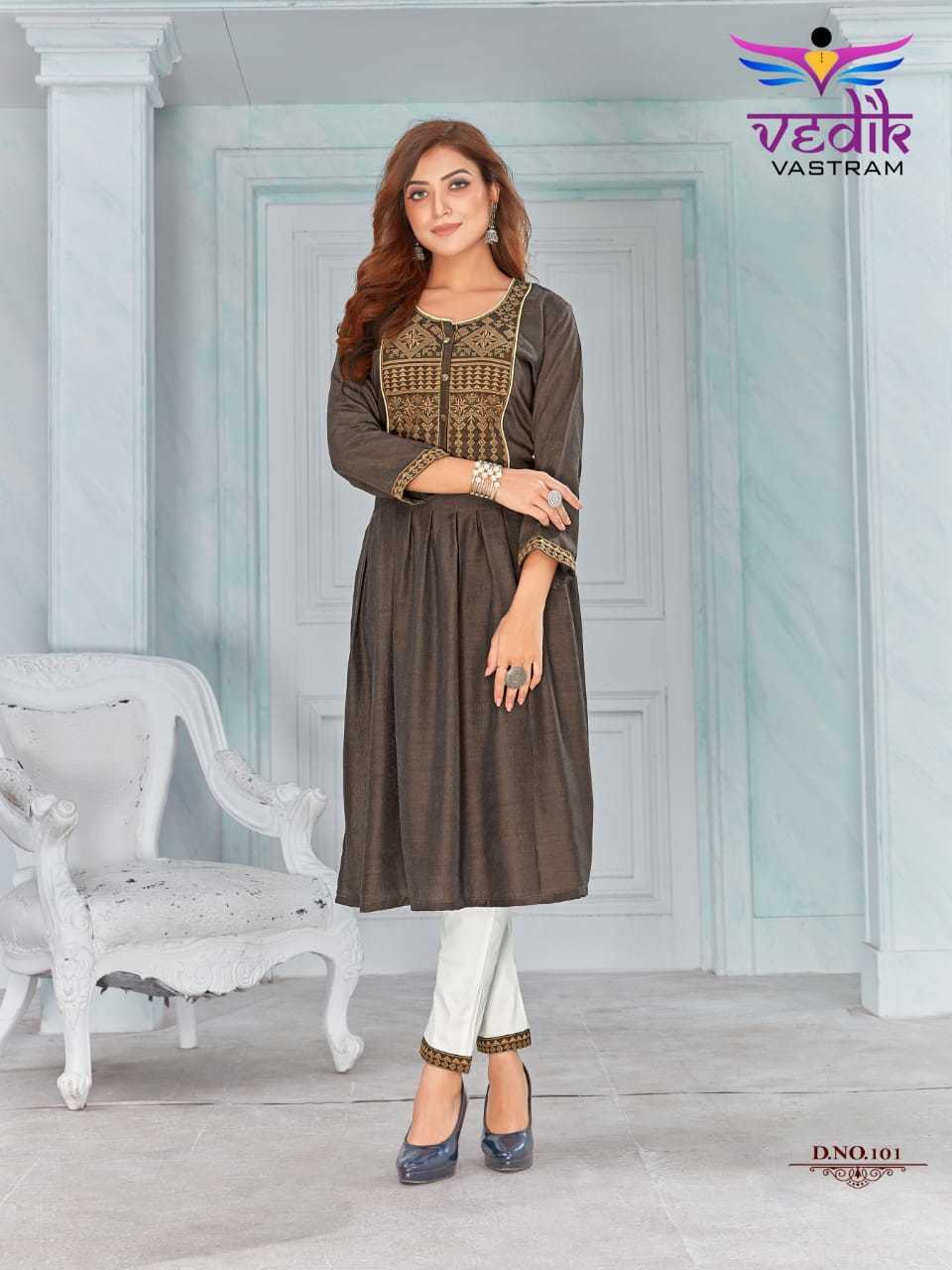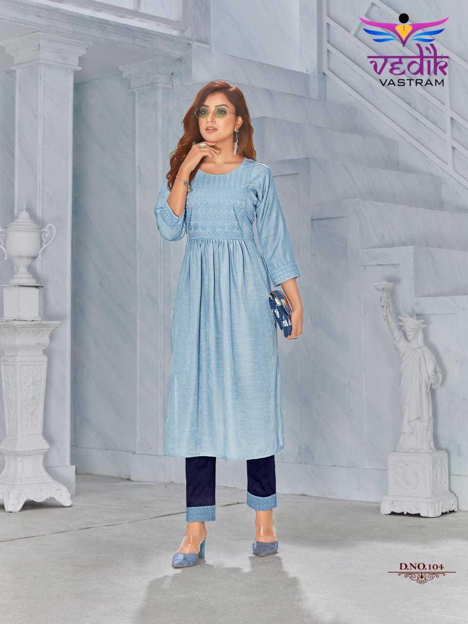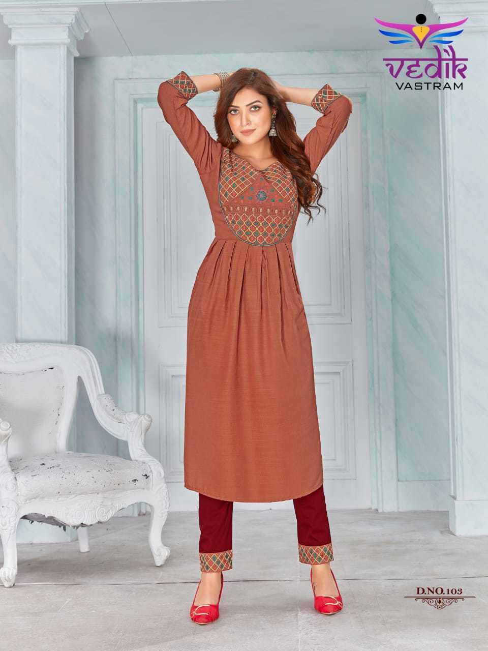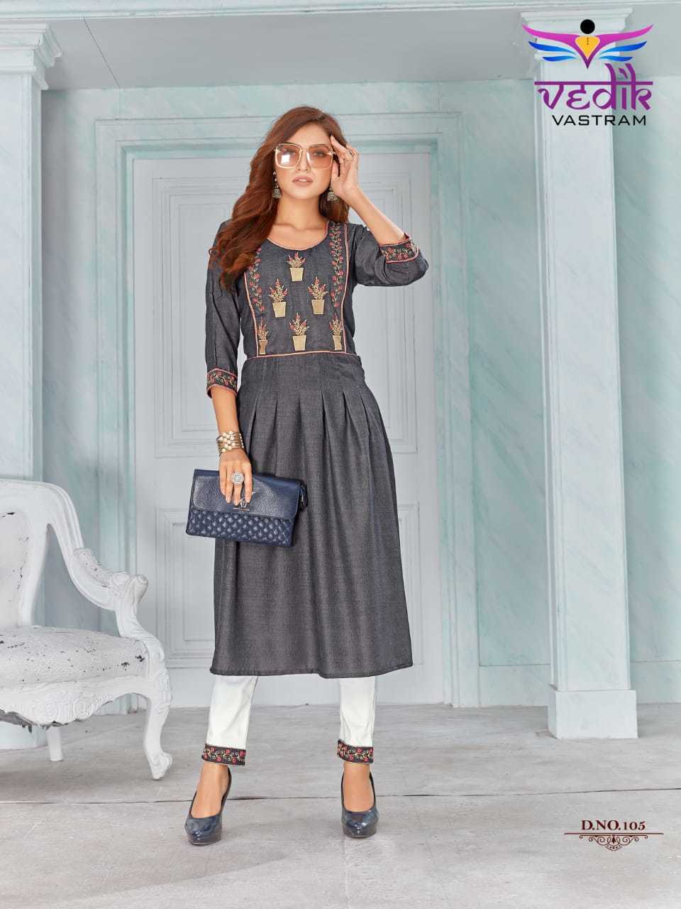 Explore in english - Rich Look Vol-1 Reyon Slub Embroidery Kurtis With Pant Catalogue