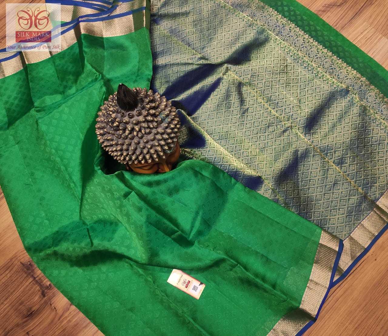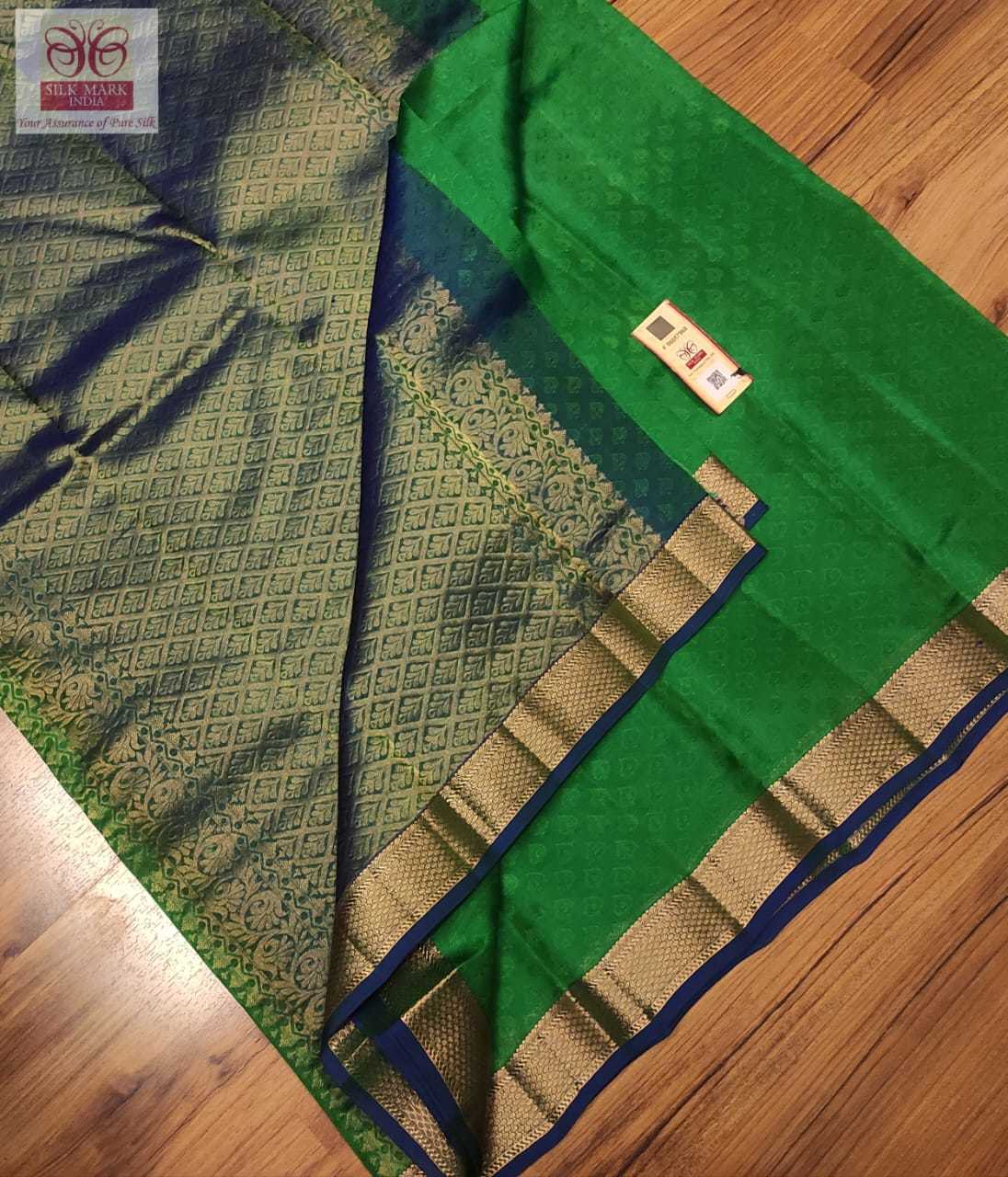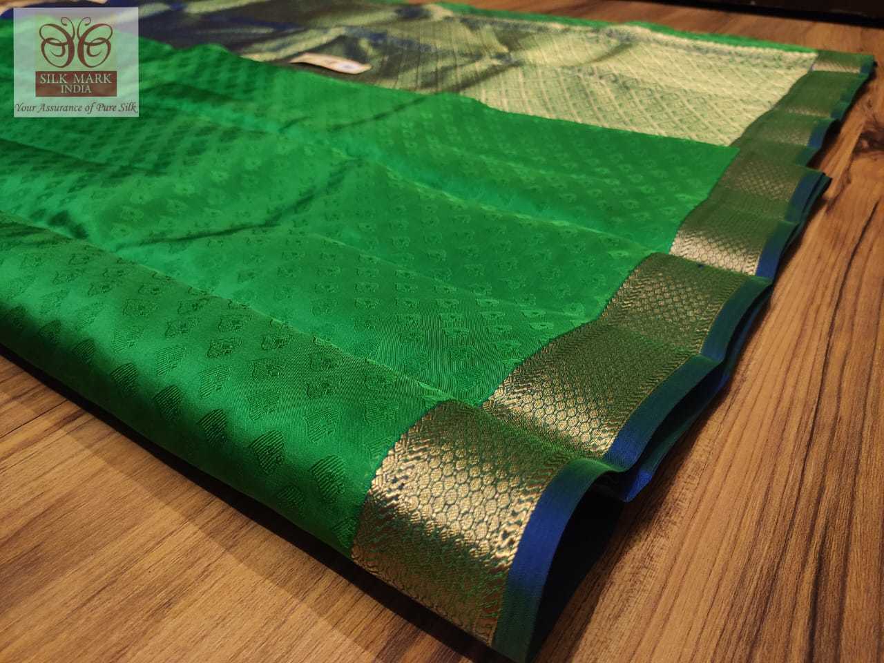ग्रीन विद ब्लू रिच पल्लू कांजीवरम सिल्क साड़ी