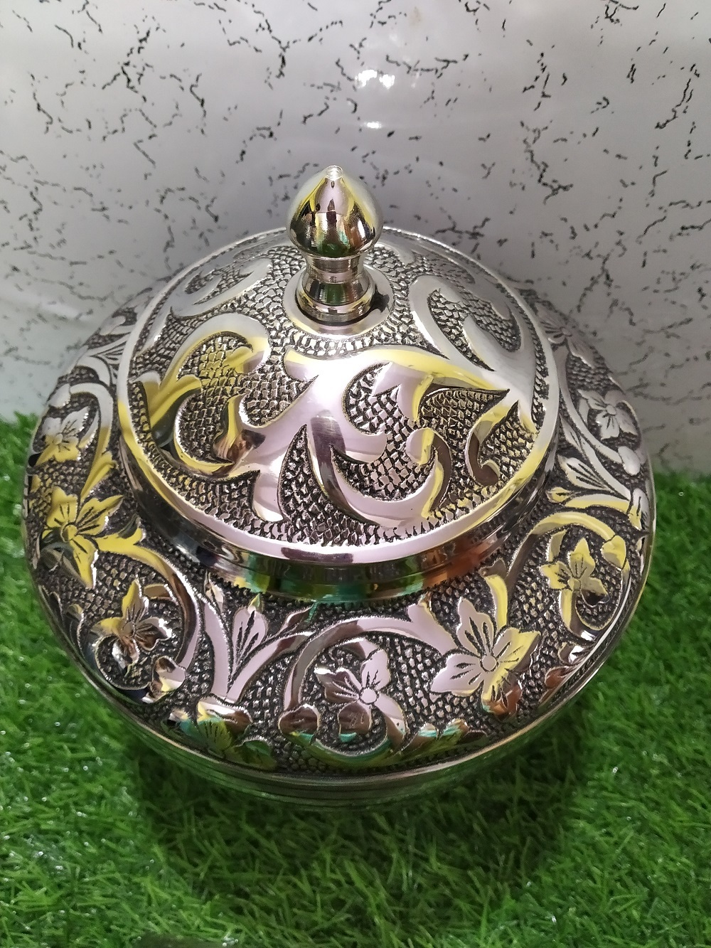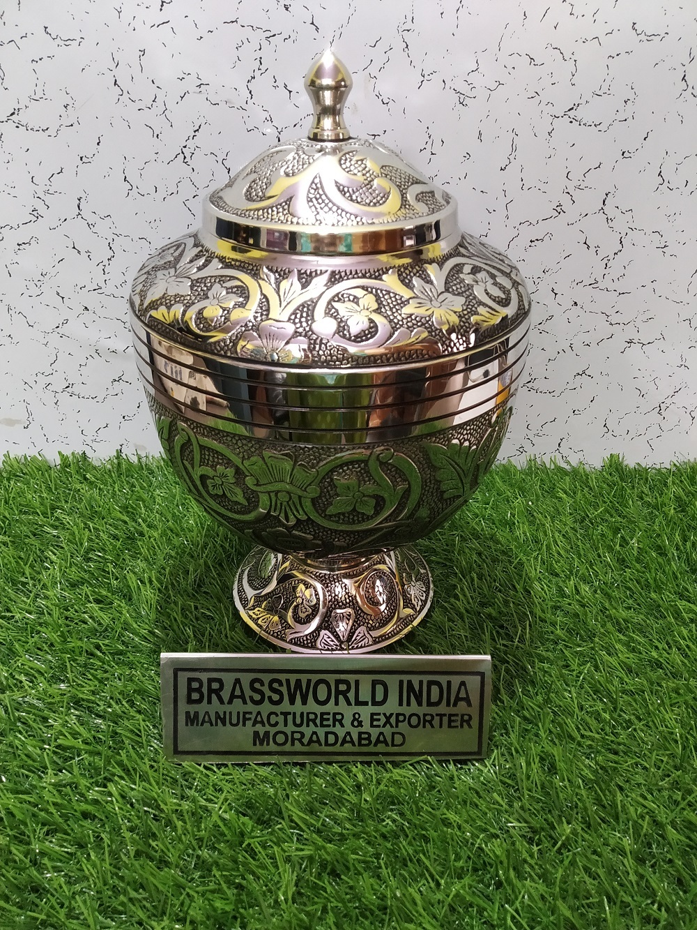 धातु पीतल का पूर्ण उत्कीर्ण श्मशान कलश