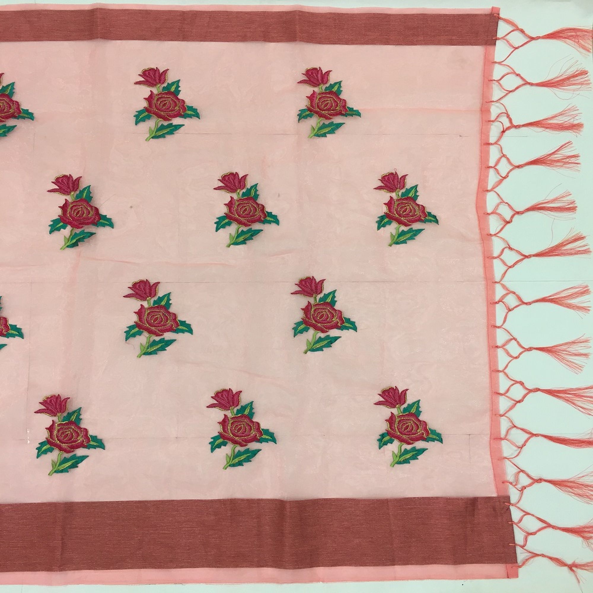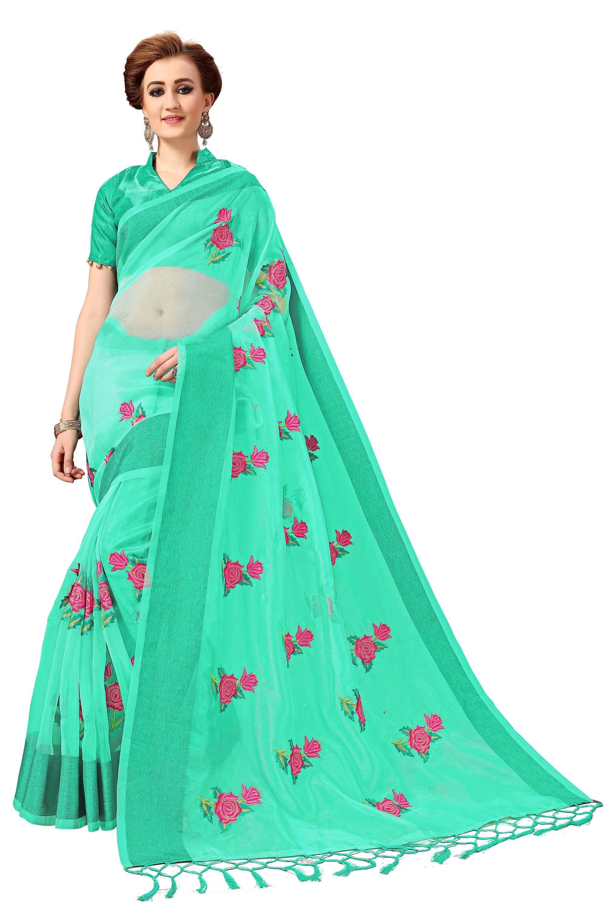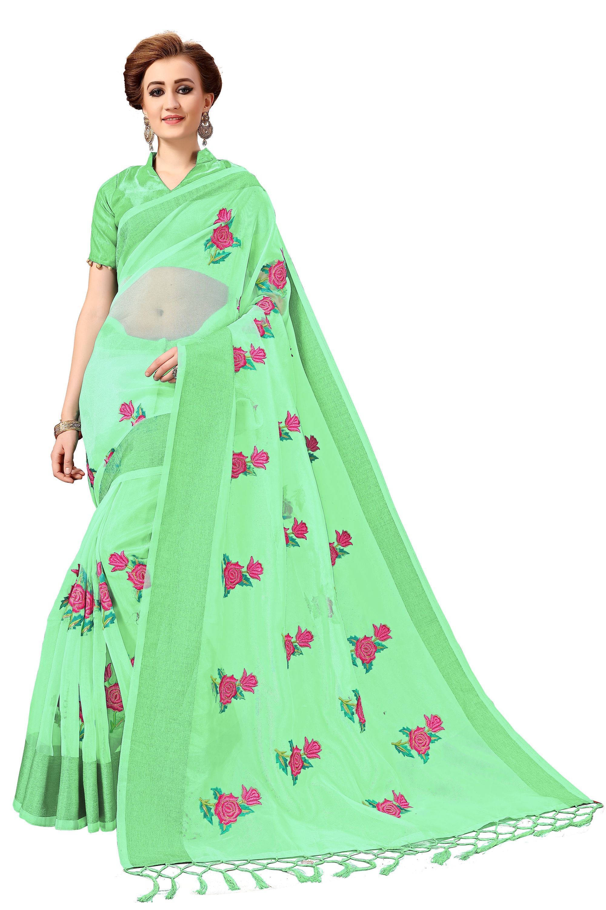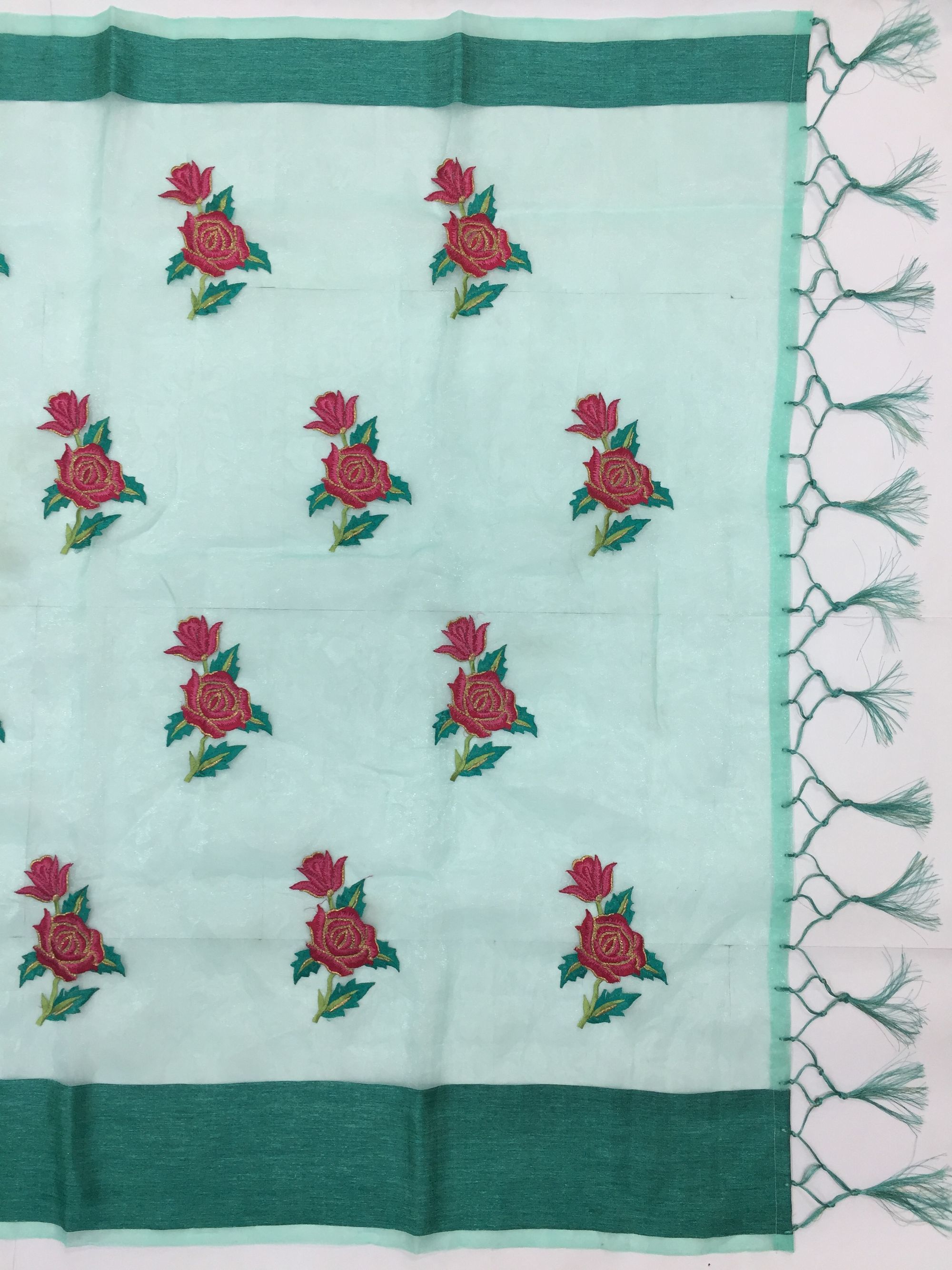 पैरेट ग्रीन रोज़ डिज़ाइन एम्ब्रॉएडर्ड साड़ी