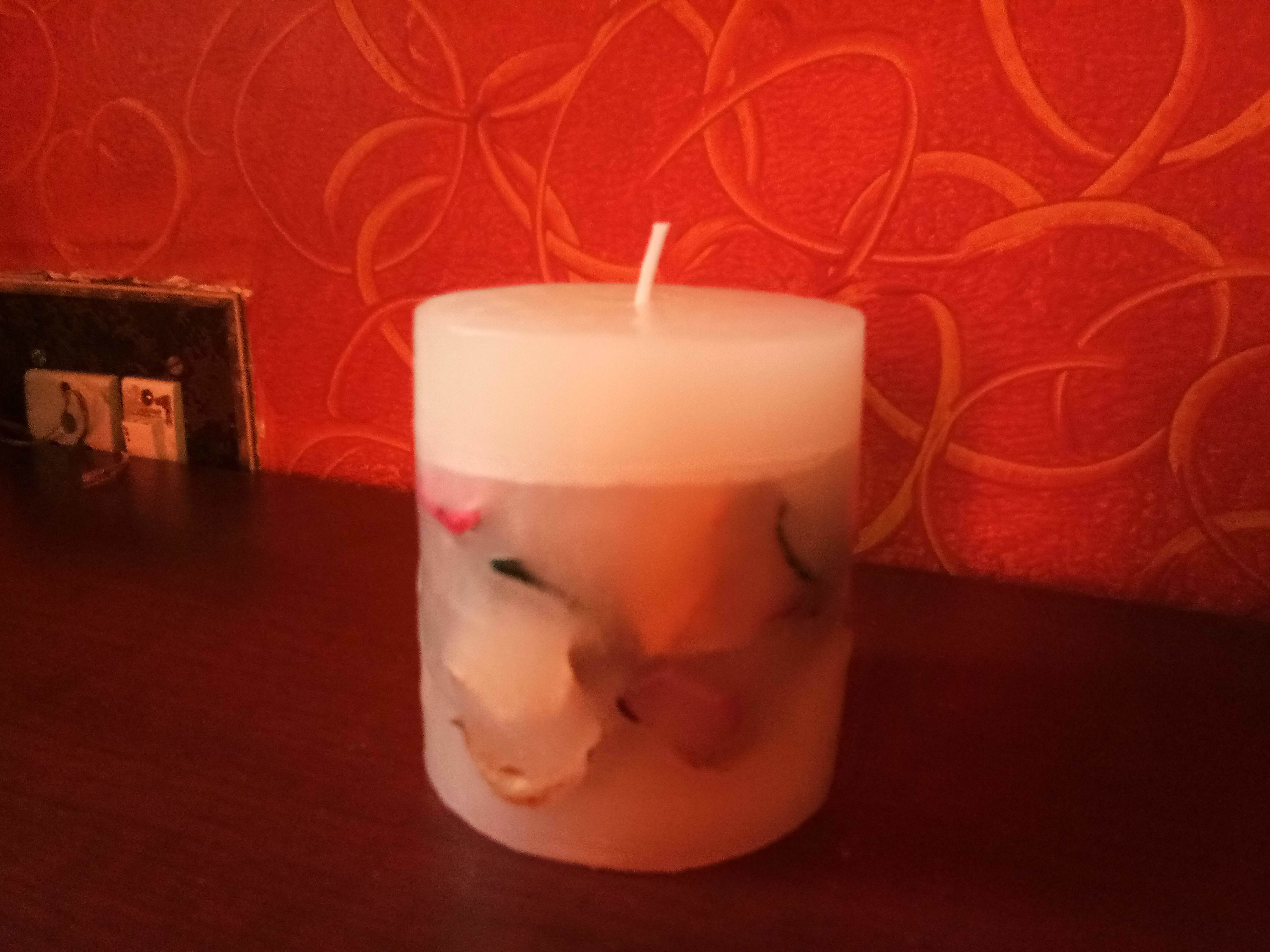 गुलाब की पंखुड़ियों वाली मोमबत्ती