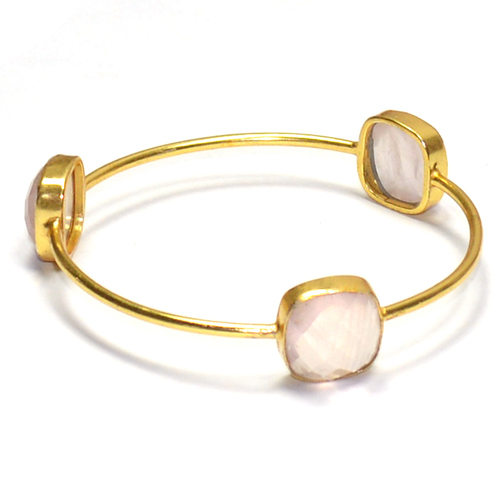 - रोज़ क्वार्ट्ज़ कुशन 925 स्टर्लिंग सिल्वर चूड़ी