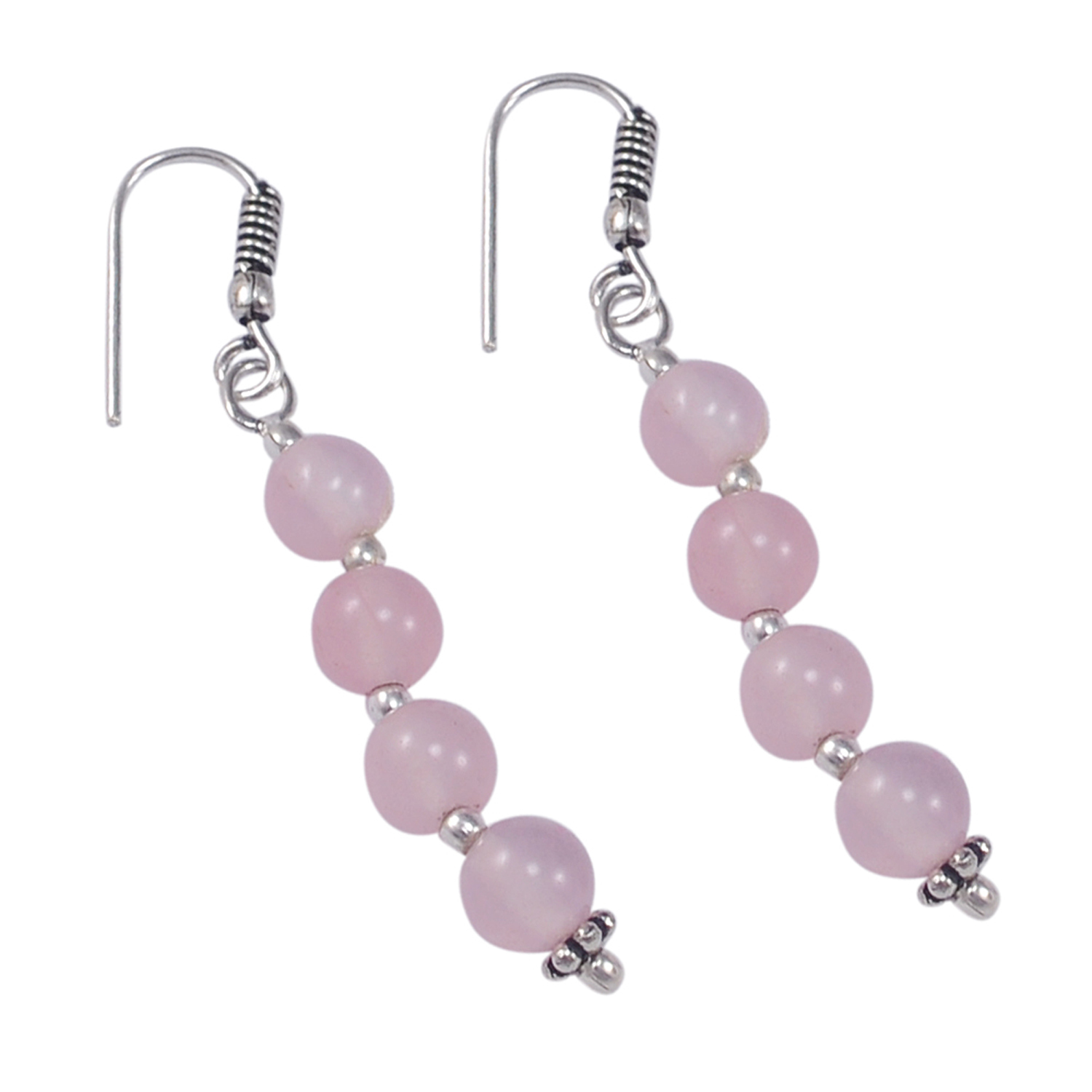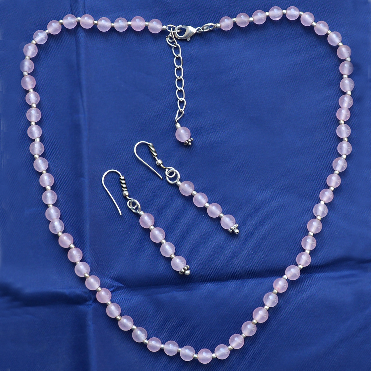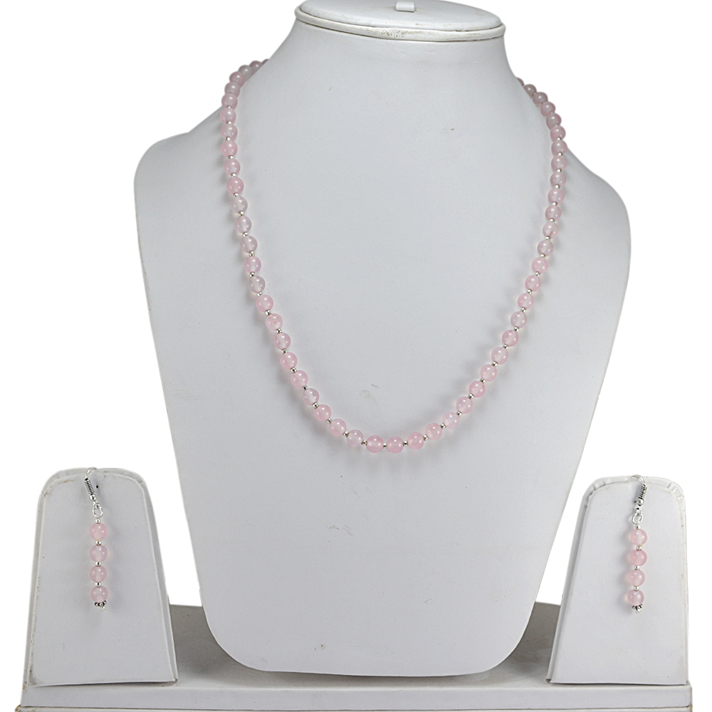 रोज़ क्वार्ट्ज़ स्टोन सिल्वर नेकलेस सेट Pg-156654 आकार: 0.6x47 Cm.