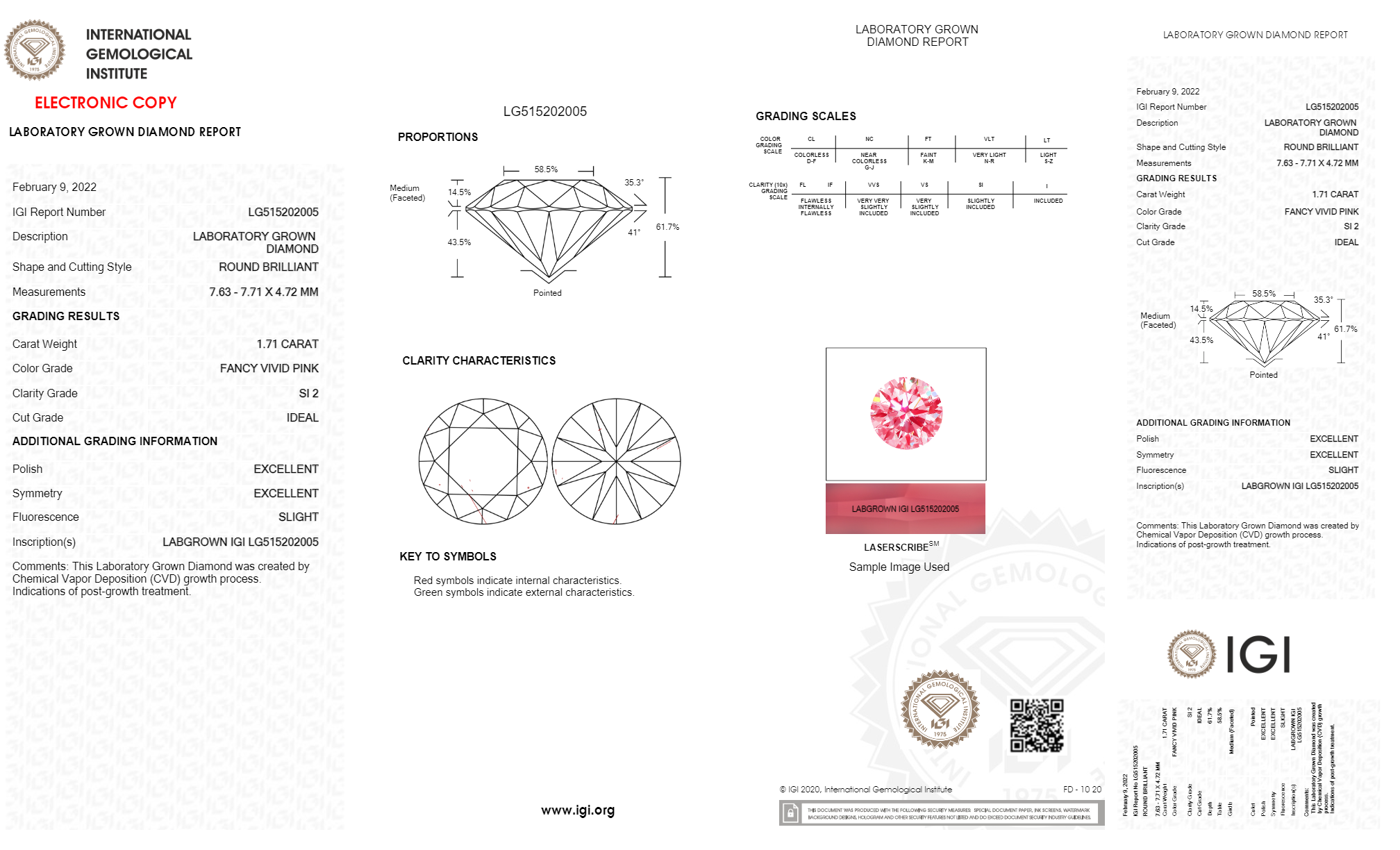 Explore in english - Round 1.71ct Fancy Vivid Pink SI2 IGI Certified CVD Lab Grown Diamond EC2569