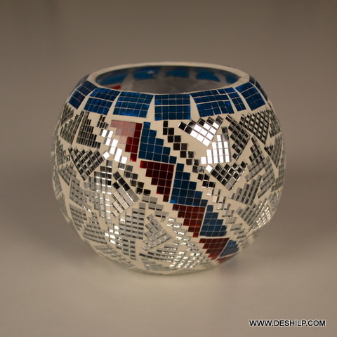 मोज़ेक फिनिश के साथ मॉडर्न आर्ट्स राउंड ग्लास कैंडल होल्डर