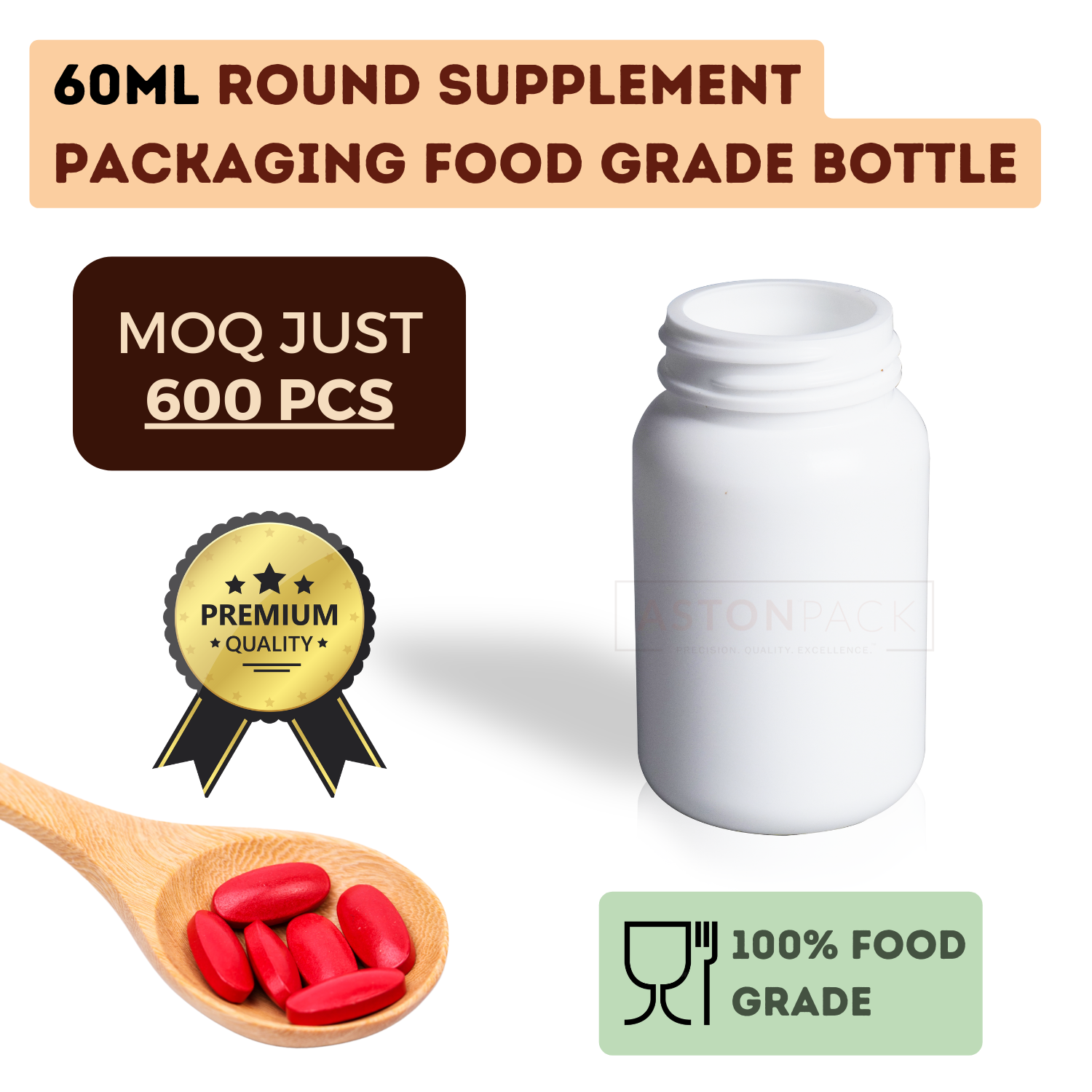 राउंड सप्लीमेंट पैकेजिंग फूड ग्रेड बॉटल क्षमता: 60cc