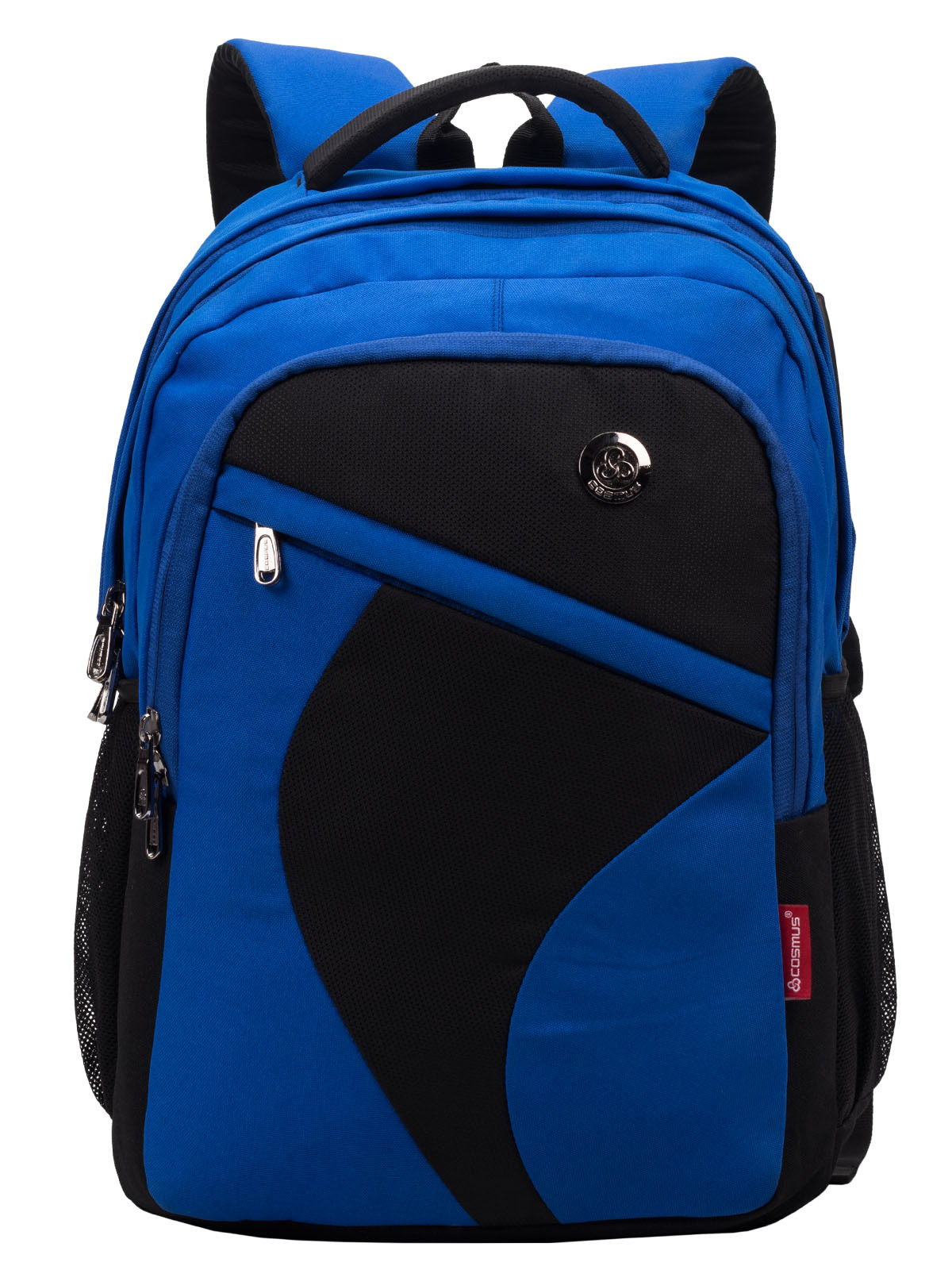 लैपटॉप सेक्शन के साथ ब्लू और ब्लैक स्कूल बैग