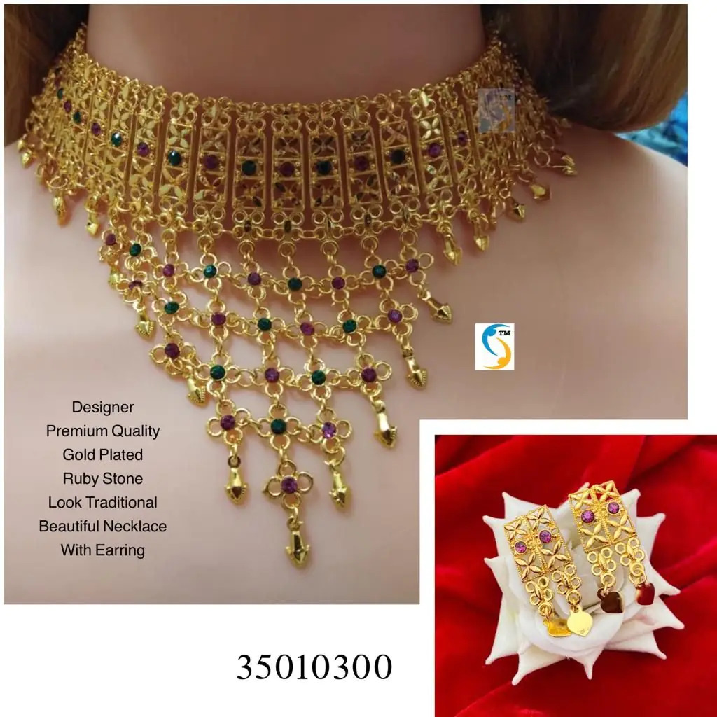 गोल्ड रूबी स्टोन बहुत सुंदर दिखने वाला ट्रेडिशनल नेकलेस