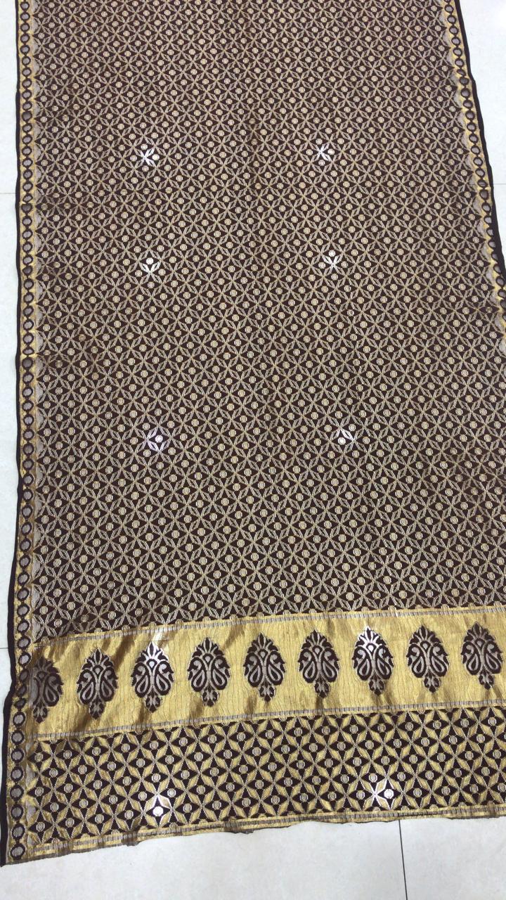 प्रिंटेड सावी ब्लैक बनारसी सिल्क ड्रेस मटीरियल
