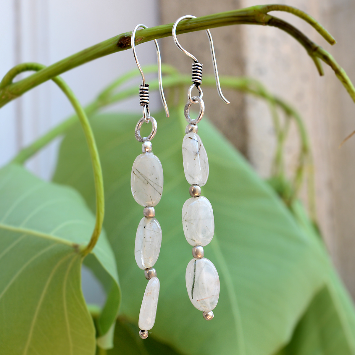 Explore in english - Rutile Quartz Stone Silver Earring PG-156363