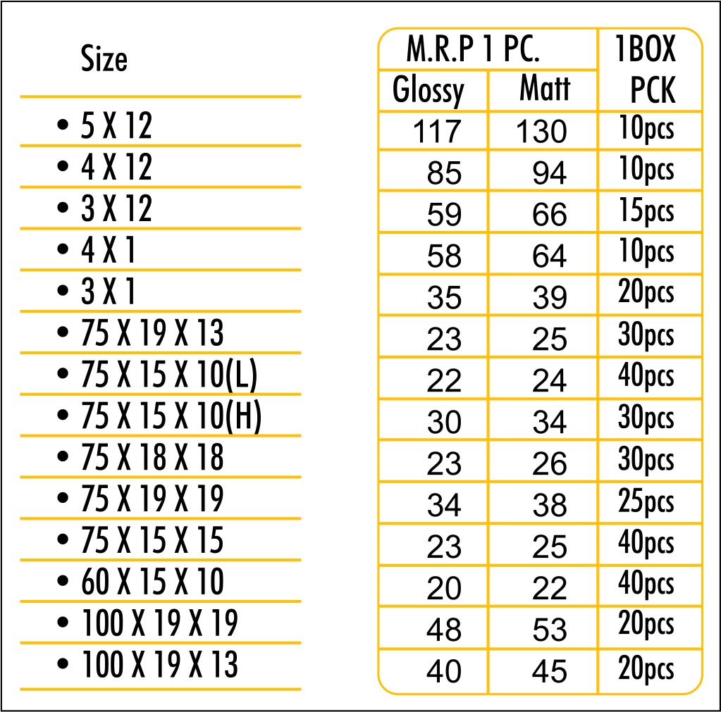 | रंग | s.s glossy,MATT |