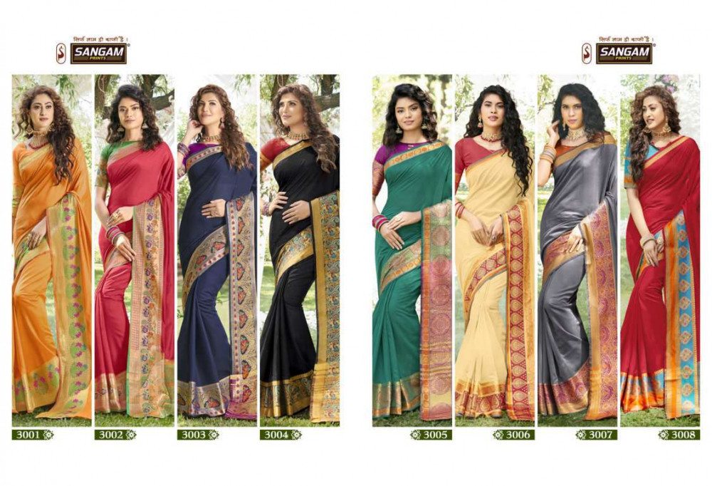 संगम प्रिंट्स बंगाल हैंडलूम सिल्क कॉन्ट्रास्टेड बॉर्डर वीविंग साड़ी कैटलॉग