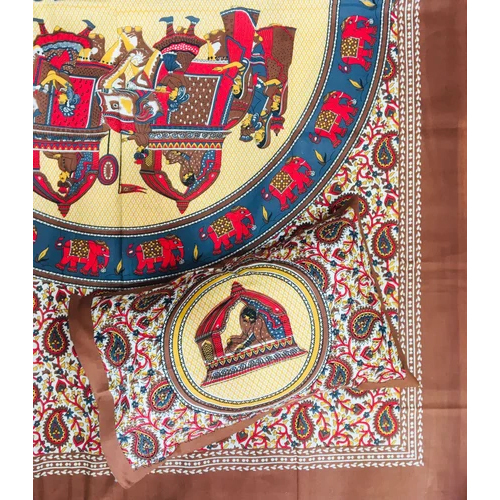 पीला-सफ़ेद-मल्टीकलर सांगानेरी दीवान बेड शीट