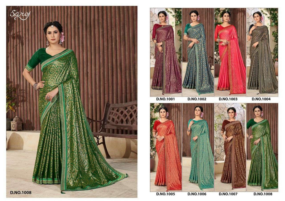 फ़ॉइल प्रिंट साड़ी के साथ सरोज शाइस्ता लाइक्रा
