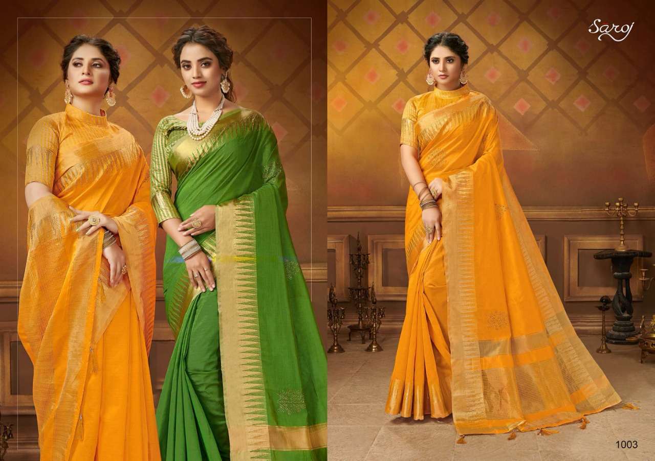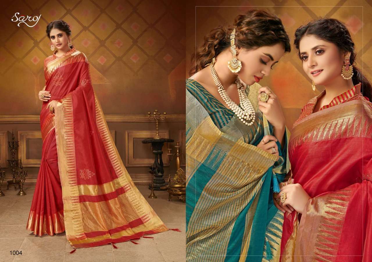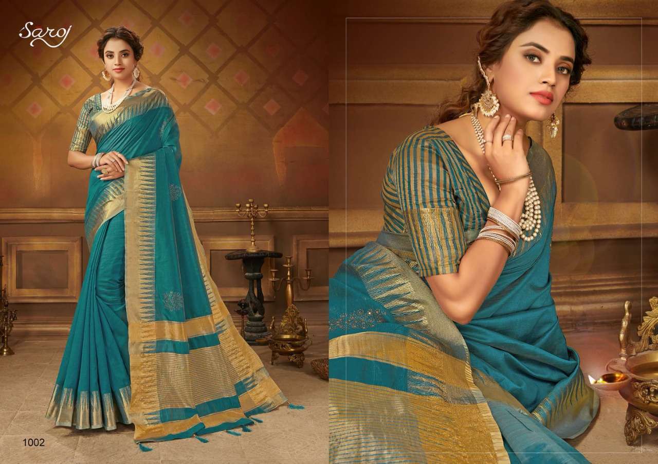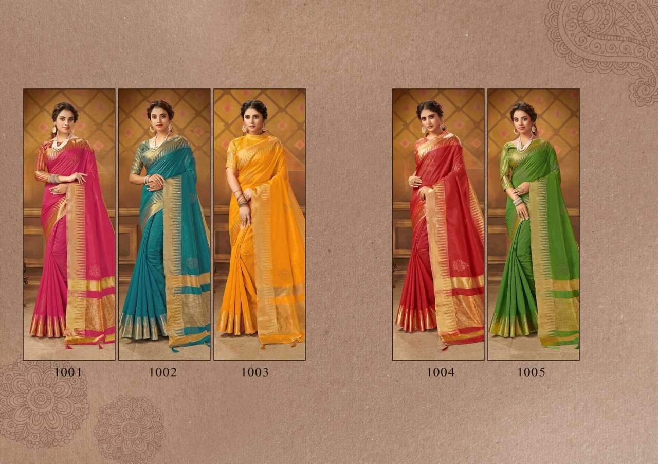 मल्टी कलर सरोज टेक्सटाइल्स जूही कॉटन सिल्क जरी पल्लू और स्वारोवस्की बुट्टा प्रिंटेड साड़ी कैटलॉग के साथ