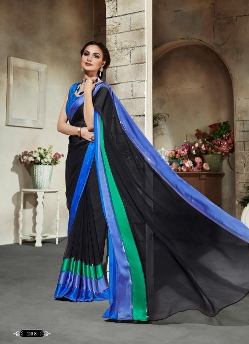क्रीम रंग की महिलाओं की क्रश चिनोन साड़ी ब्लाउज़ और कमर बेल्ट के साथ