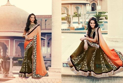 साटन शिफॉन + नेट, फैंसी साड़ी