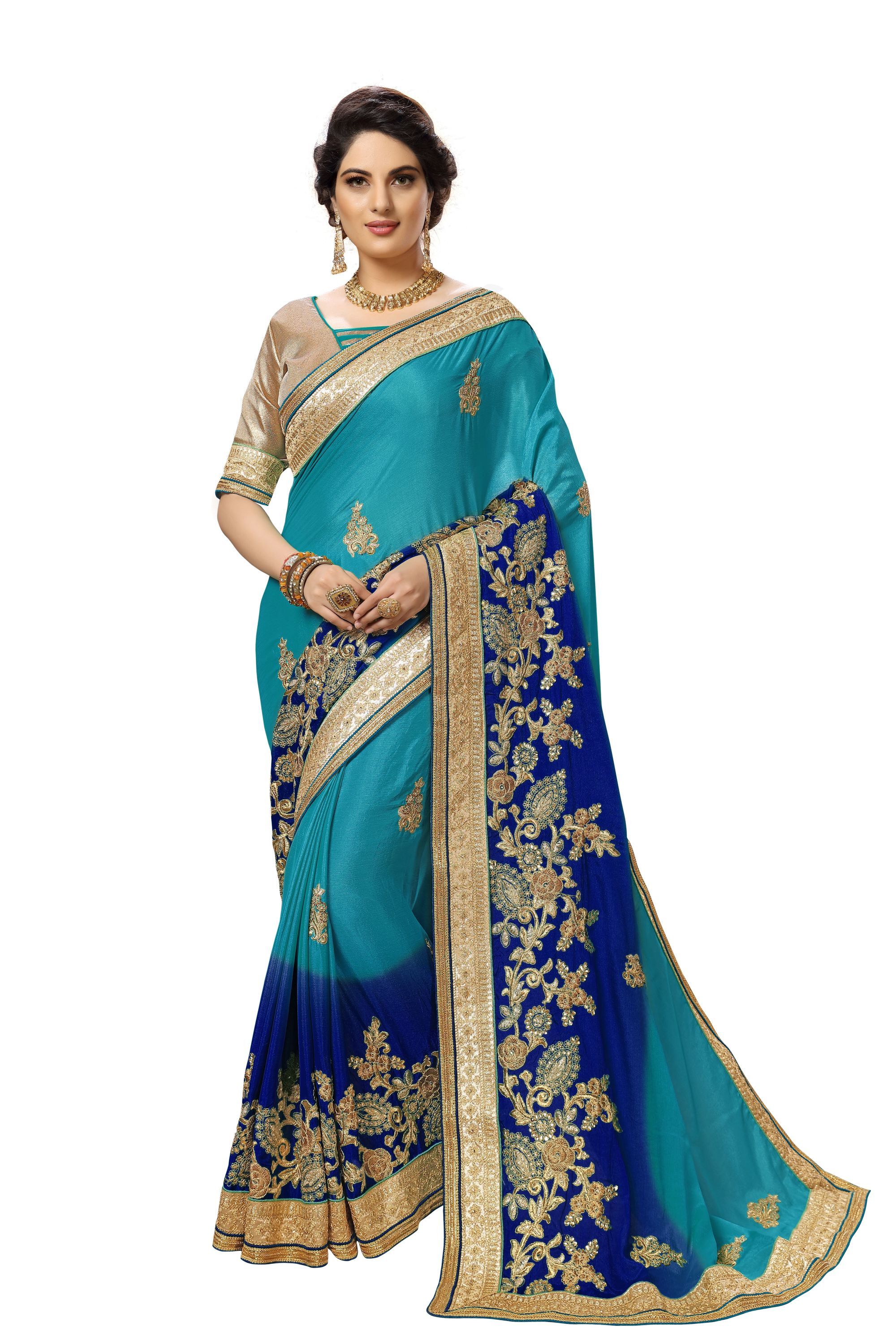 हरे रंग की साटन कढ़ाई वाली वर्क साड़ी