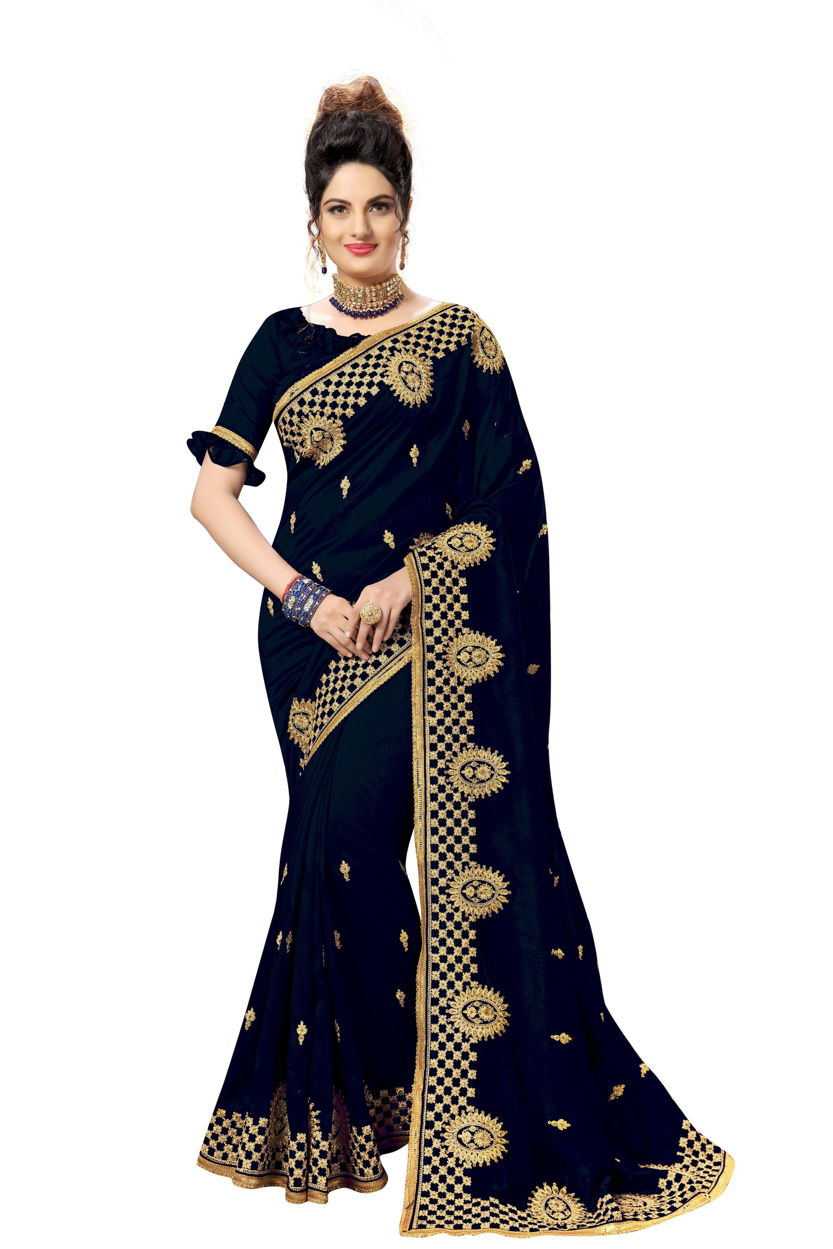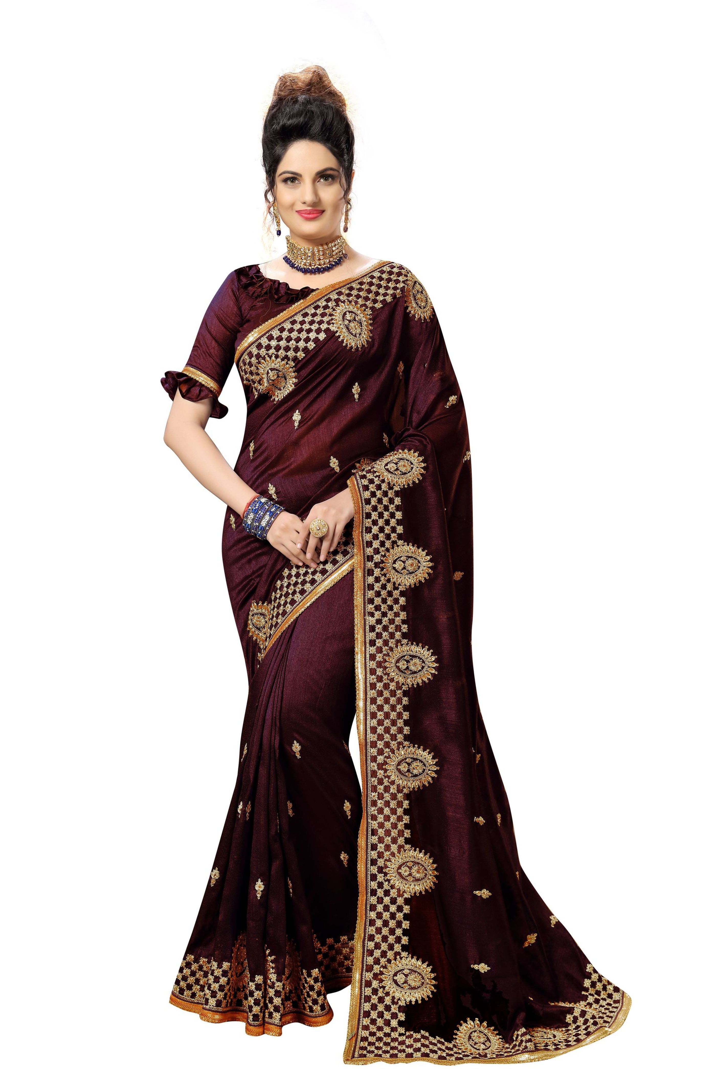 पर्पल साटन एम्ब्रॉयडरी साड़ी