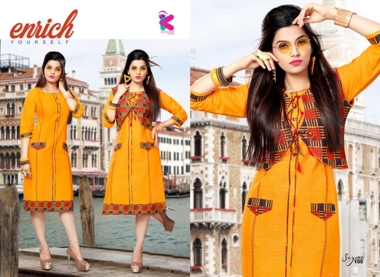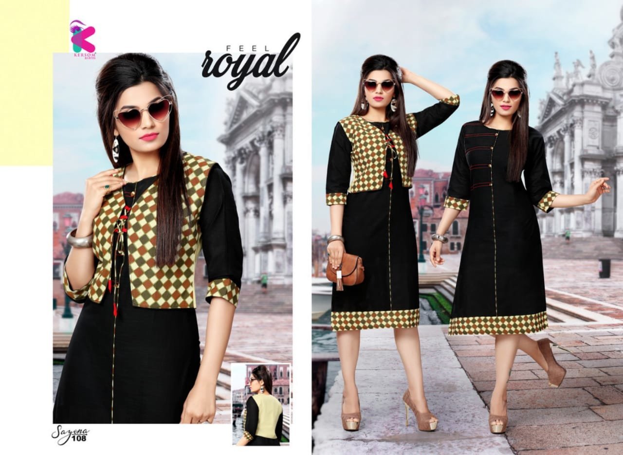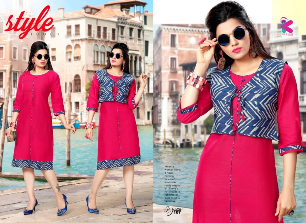 केर्सम द्वारा प्रिंटेड कोटी कुर्ती डिज़ाइन के साथ स्प्रिंग सयोना प्लेन