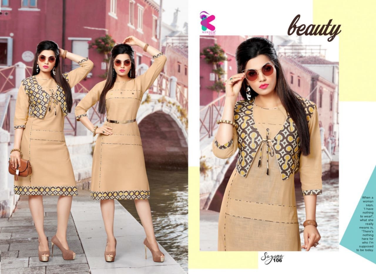 Explore in english - Sayona Plain with Printed Cotti Kurti Design by Kersom